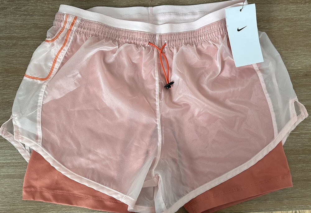 NWT Nike 2 layer running shorts with back pocket . Beautiful peachy color. Nike Icon Clash Temp Luxe 2in1 Midrise Running Shorts orange in size Extra Small. Original price is $50 Empower yourself with a 2-in-1 twist on a staple. The Nike Icon Clash Tempo Luxe Shorts keep it smooth and light with 2 layers for total support through your run. Plus, we added the original "Solo Swoosh" in homage to those iconic athletes and teams of the '90s. This product is made with at least 50% recycled polyester fibers. Color: Rush Orange