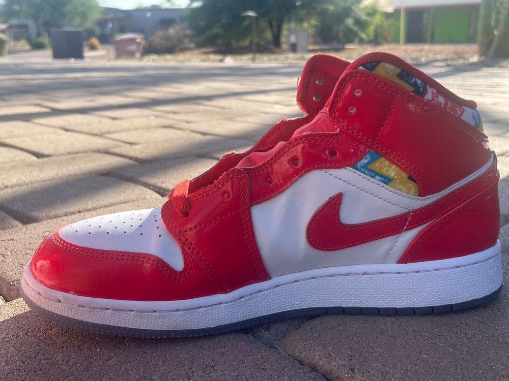 Nike Youth Air Jordan 1 Mid Se GS Electro Orange size 7. Very good condition, hardly any creases. very nice shoes. No Box