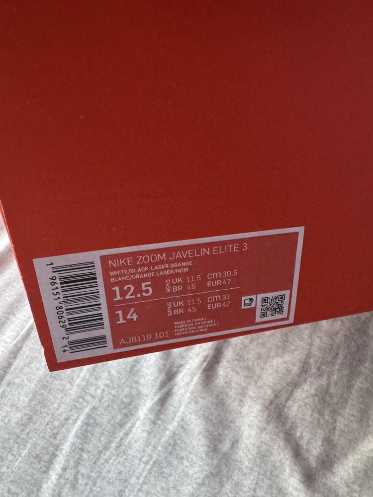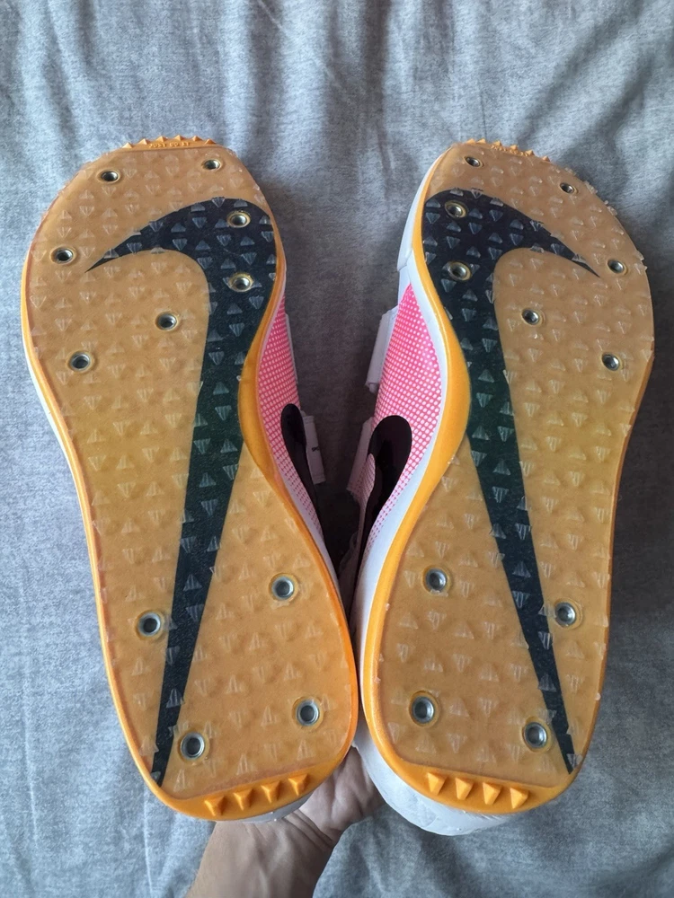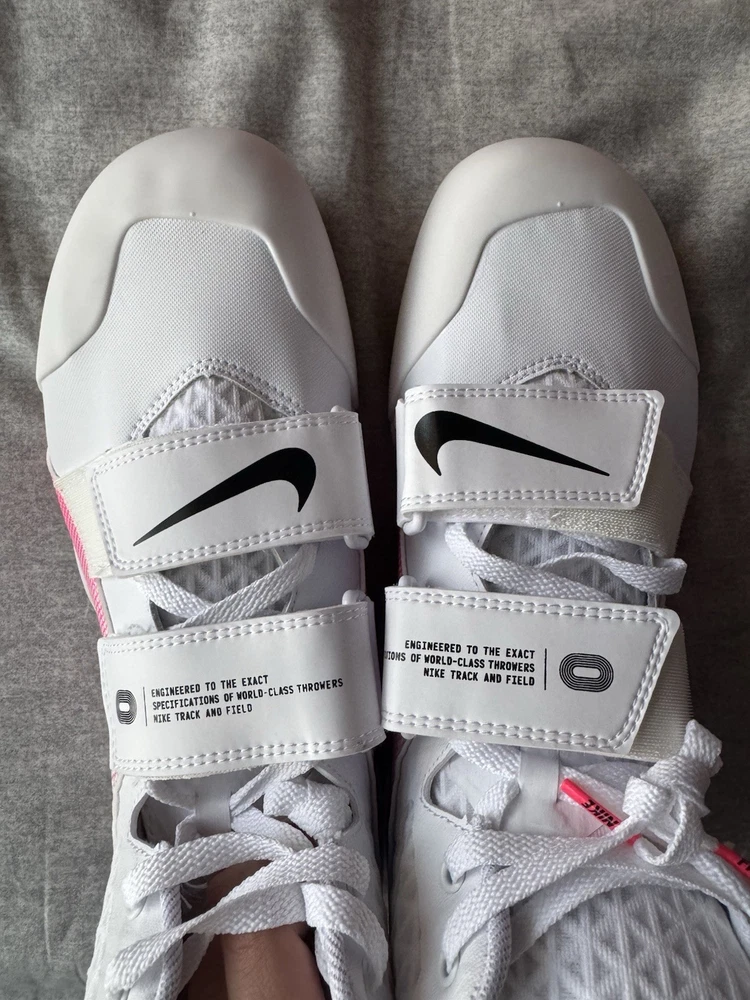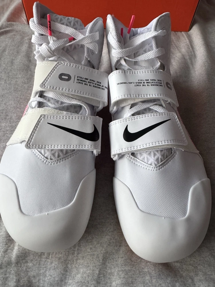 These track shoes are a game-changer! The lightweight build and responsive Zoom cushioning give me explosive speed off the line. The bright pink and orange color pops on the track, and the spike plate delivers insane traction. Fit is true to size – snug for performance but still comfortable. Even without the box lid or bag, these bad boys are worth every penny for serious throwers and sprinters. Nike nailed it with the Javelin Elite 3!