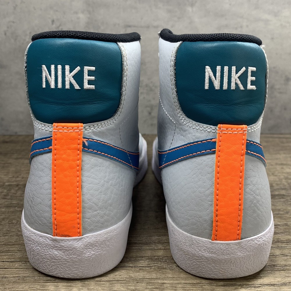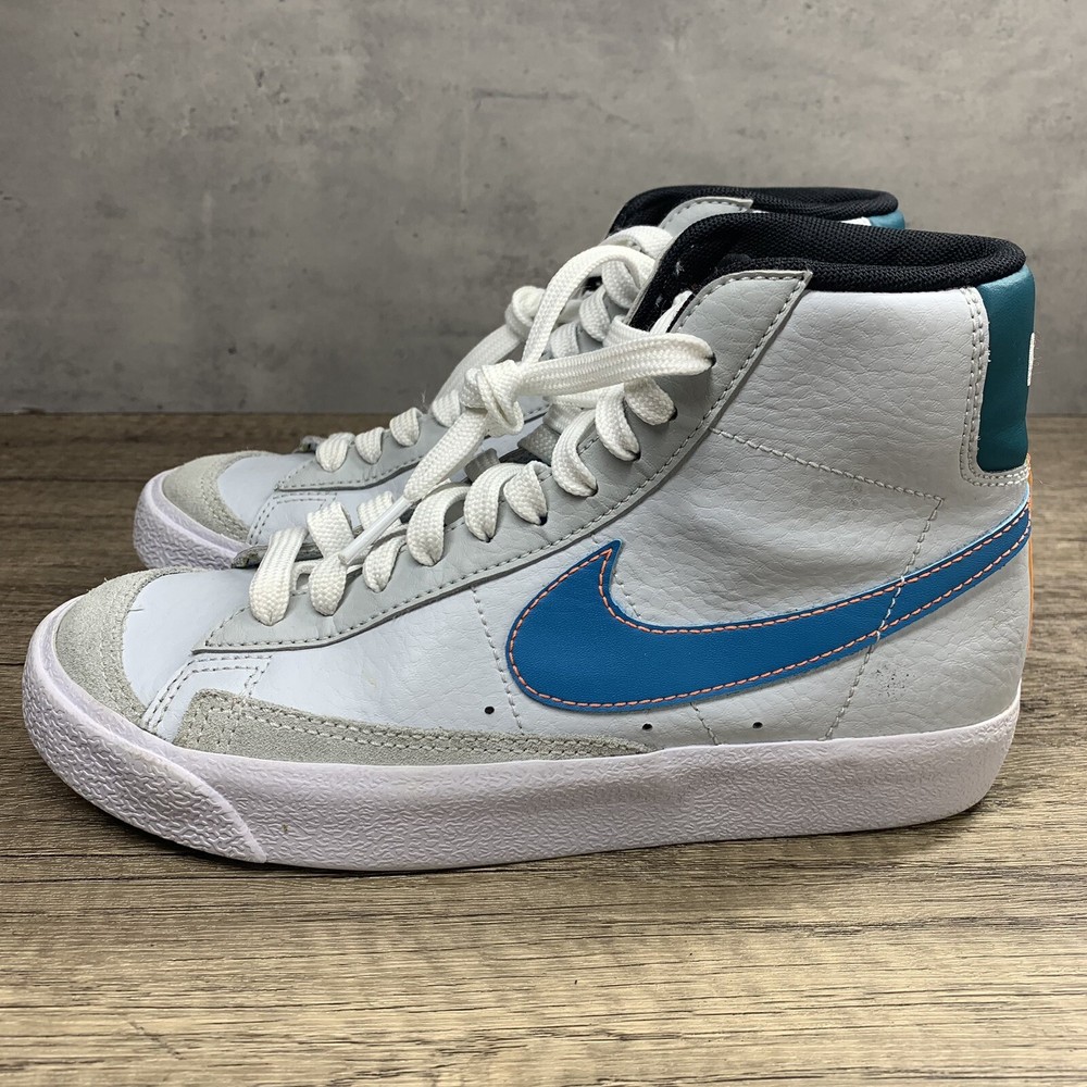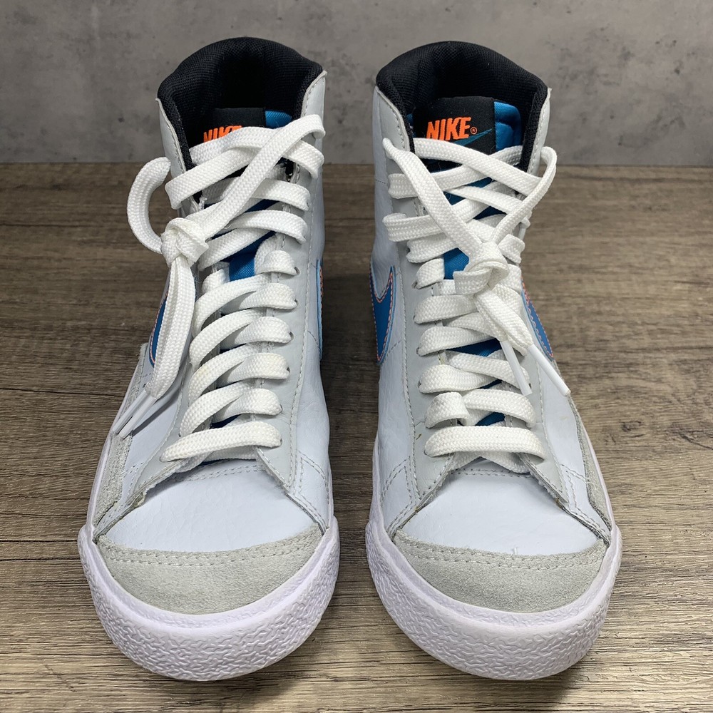 Nike~Youth~Blazer Mid 77 GS White/Blue/ Orange Shoes~Size 4.5Y. Condition is Pre-owned. Shipped with USPS Priority Mail.