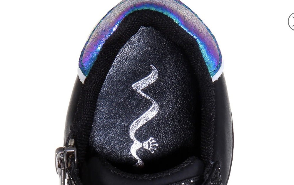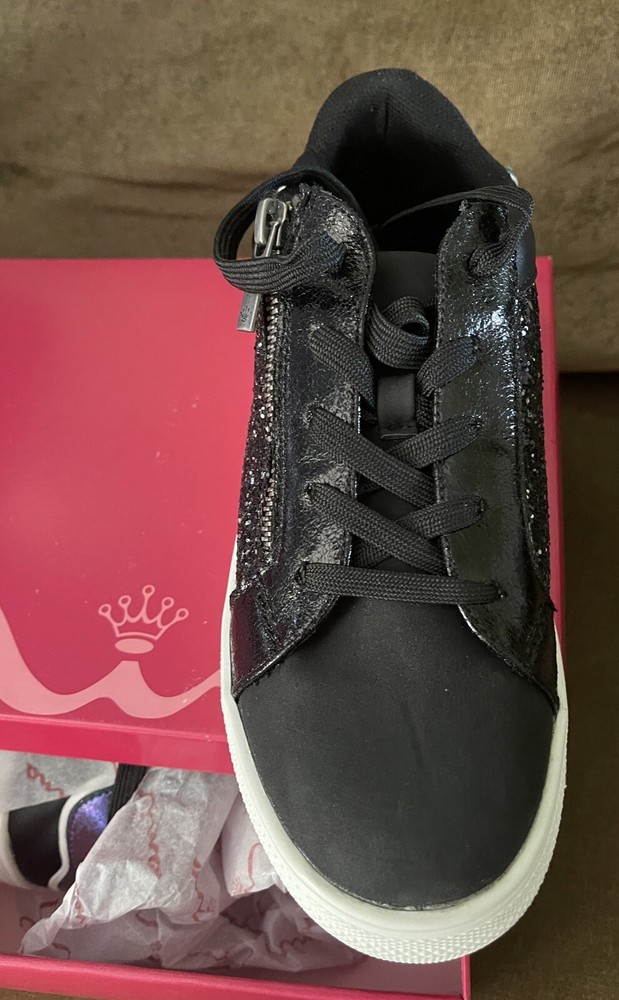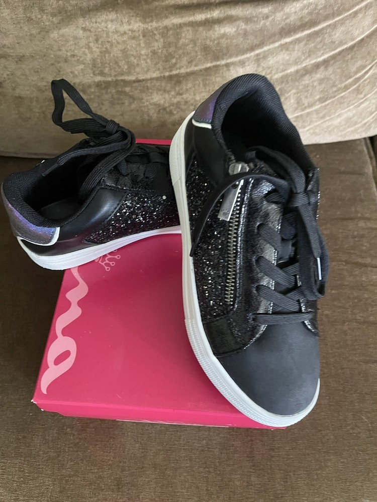 Nina Girls Joss Sneakers Black glam Glitter Lace Up Low Top With Zipper sides. New in Box Size Kids 3M This sweet, versatile sneaker has all the shimmer needed to brighten any of your kiddo's outfits. Synthetic upper and lining/rubber sole Imported New in box