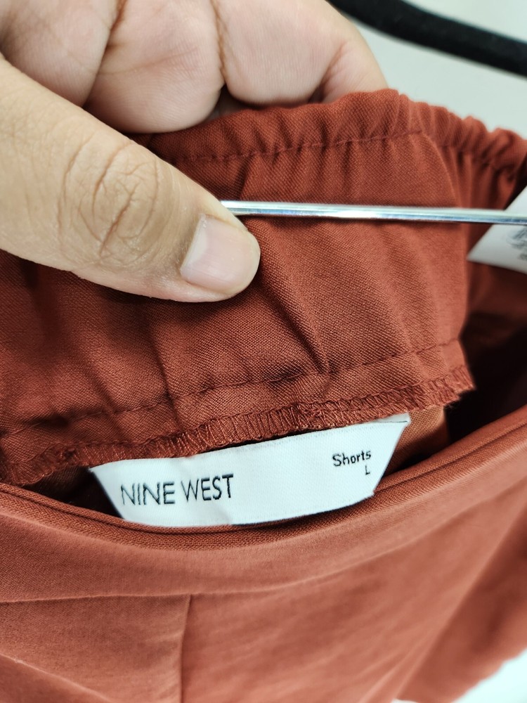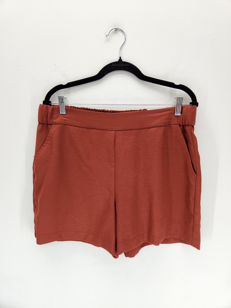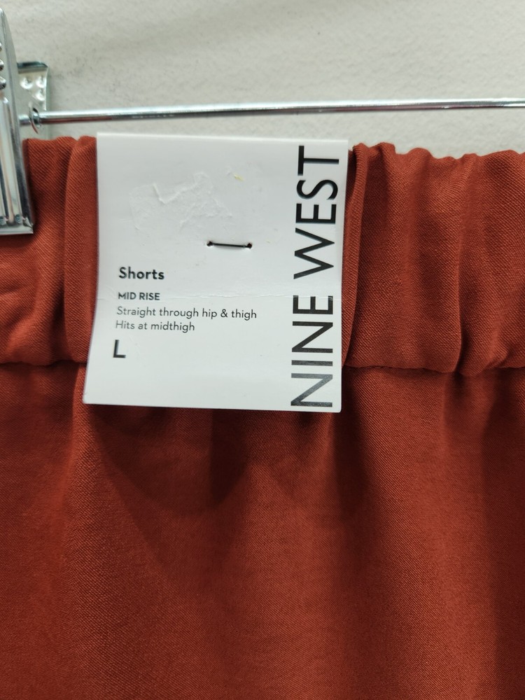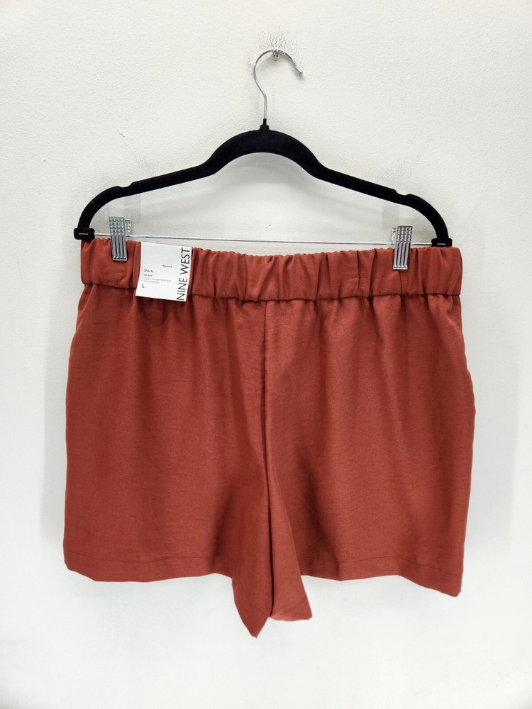 Nine West Soft Shorts Womens Large Brown Mid Rise BNWTs Pockets Elastic waistband Short length Burnt orange color...