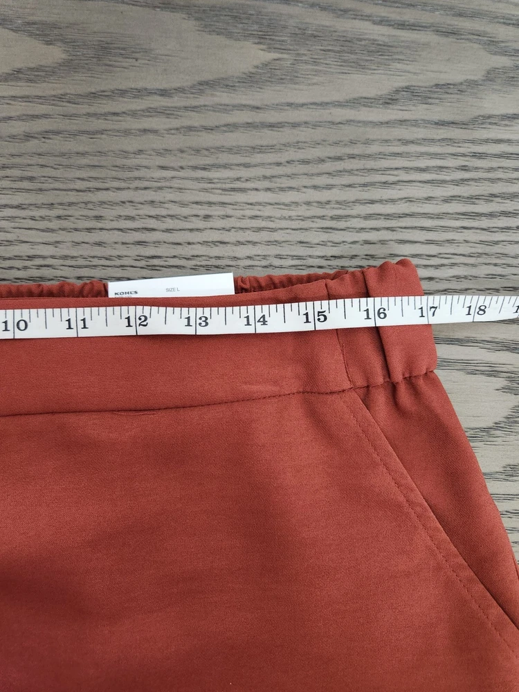 Nine West Soft Shorts Womens Large Brown Mid Rise BNWTs Pockets Elastic waistband Short length Burnt orange color