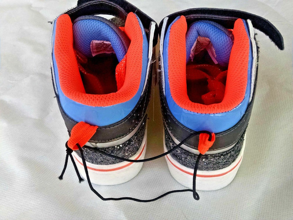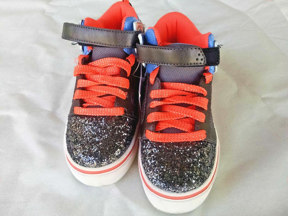 OP Girls Athletic Shoe Black Silver Glitter Mid Top Orange Laces 12 13 3 4 5 NWT Man Made Upper Leather Fiber Sole Light Weight and Flexible Outsole Youth Girls Athletic Hook and Loop Closure and Laces Cushioned/Padded Collar and Tongue Non-Marking Soles Size 12, 13, 3, 4, 5 Brand new with tags FREE AND FAST SHIPPING (Same day or next business day) This item comes from a smoke free home. Thirty day same condition returns are always accepted. Check out my store for items for the entire family at bargain prices!!!