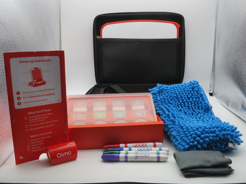 · In excellent used condition is this great lot of items for any OSMO user. · Includes: o Osmo Pizza Co.Starter Kit § Open but looks like it may not have been used. The Money tiles are still wrapped in the “bank” wrappers as shown in pictures. § Also includes pizza board, toppings and stackable storage container § Expand your child's communication skills and math abilities with the Osmo Pizza Co. Starter Kit. This educational electronic learning toy features a fun theme and is designed for ages 5-12. Create a realistic pizza shop experience with the included pizza tray, toppings, and money tiles. o Replacement OSMO Creative Board § Very clean § Includes the clip for the to of the board but not the stand o Yoobi Fuzzy Pocket Pencil Case in Aqua/Teal/Blue/Green § This cute pencil case from Yoobi is a great way to hold the pens, wipe for the Creative Board and other small accessories for the OSMO The Yoobi Fuzzy brand is known for its quality and this pencil case is no exception. § Inside the case are four Yoobi brand white board markers in good used condition and a cloth to clean off the Creative board that is used and hassome marks o The sturdy Aenllosi zippered case is perfect for storing these items and many others! The hard case covered in blue fabric is sturdy and just what you need to take it all with you! § Includes a pocket for the Creative Board, a zippered pouch that fits the clip and has room for other accessories and bungy straps to keep everything in place. Please email with any questions before bidding. Winning bidder to pay S&H based on the actual weight of the item and calculated by the eBay Shipping Calculator. The shipping amount should be reflected on your item description. I package all items as carefully as possible however, I am not responsible for any damage occurring during shipping.