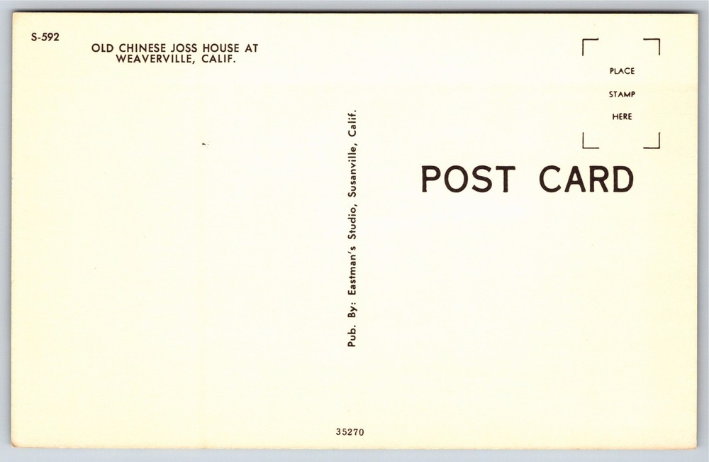 Old Chinese Joss House at Weaverville, California Chrome Postcard Unused Choice of shipping $3 is with tracking or Free which does not have tracking...