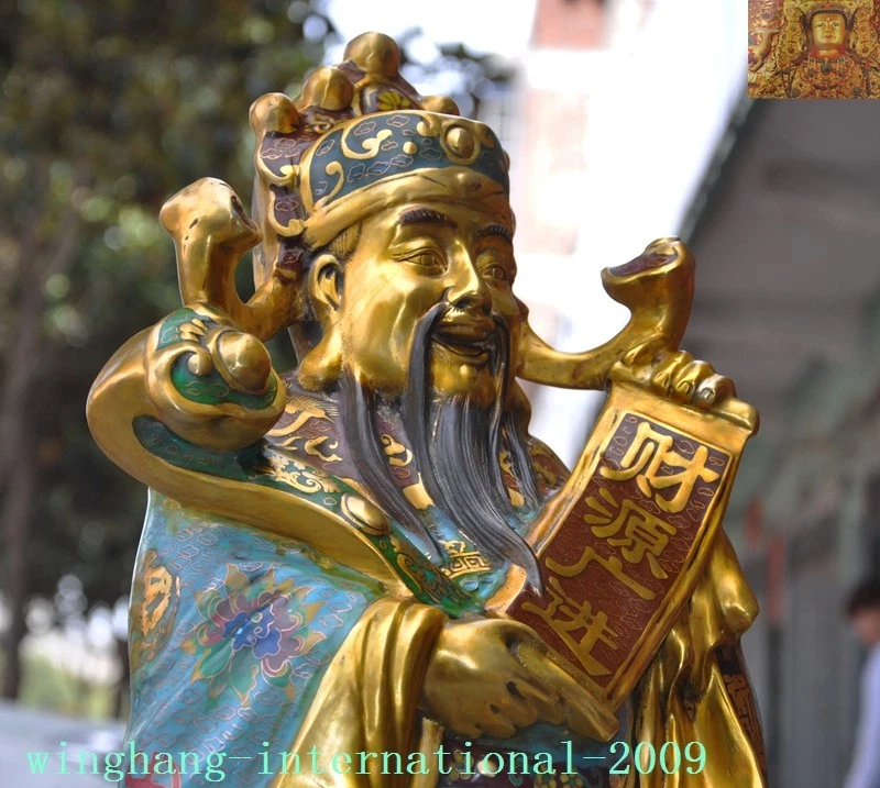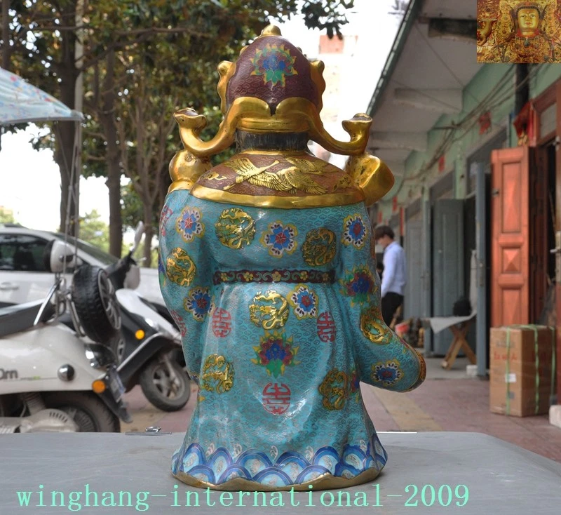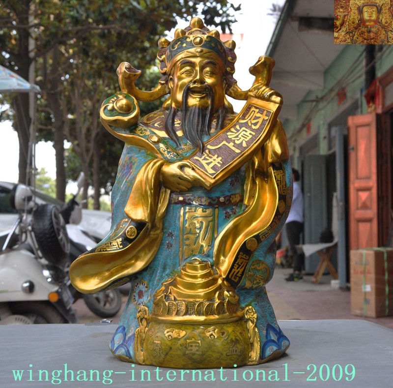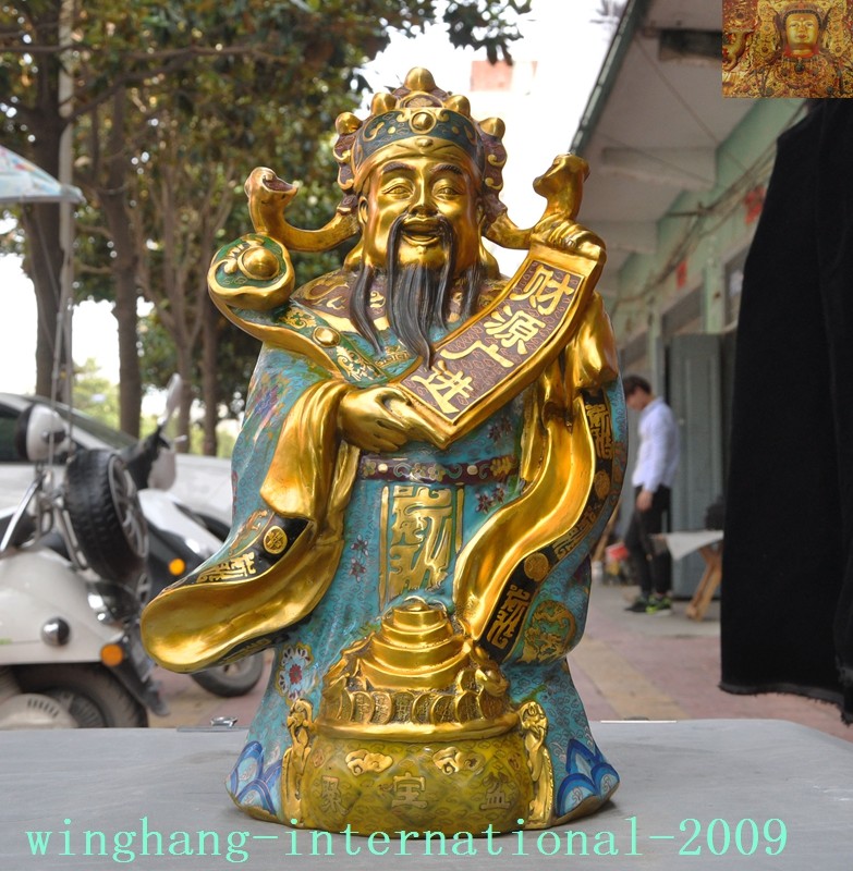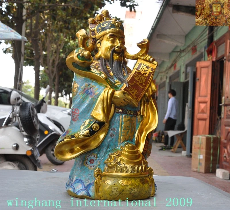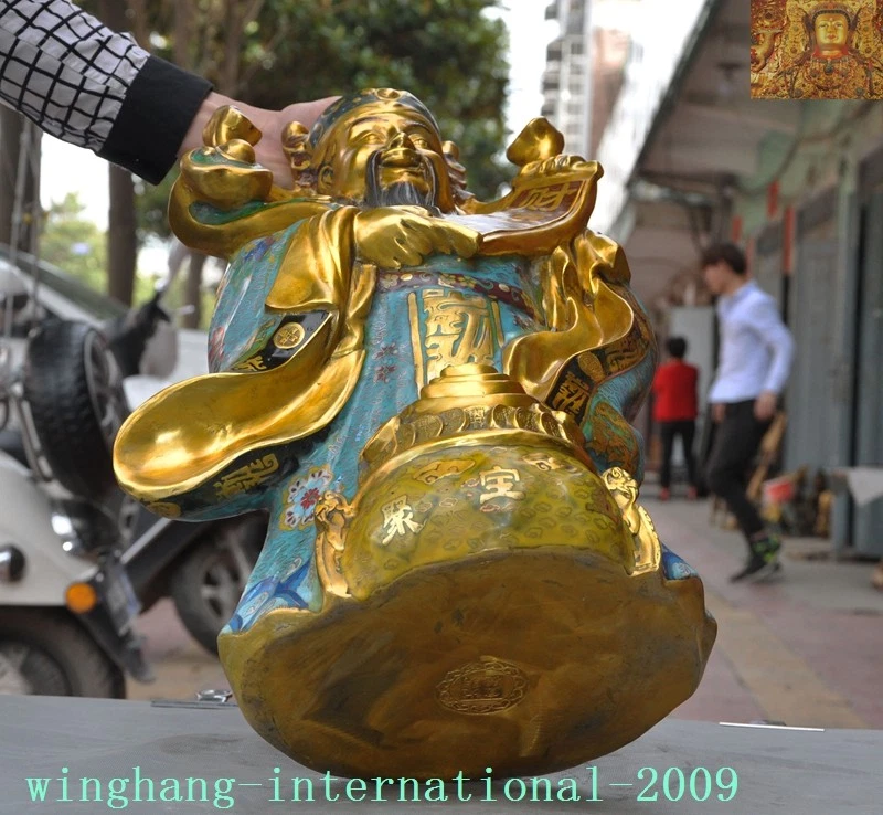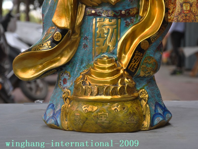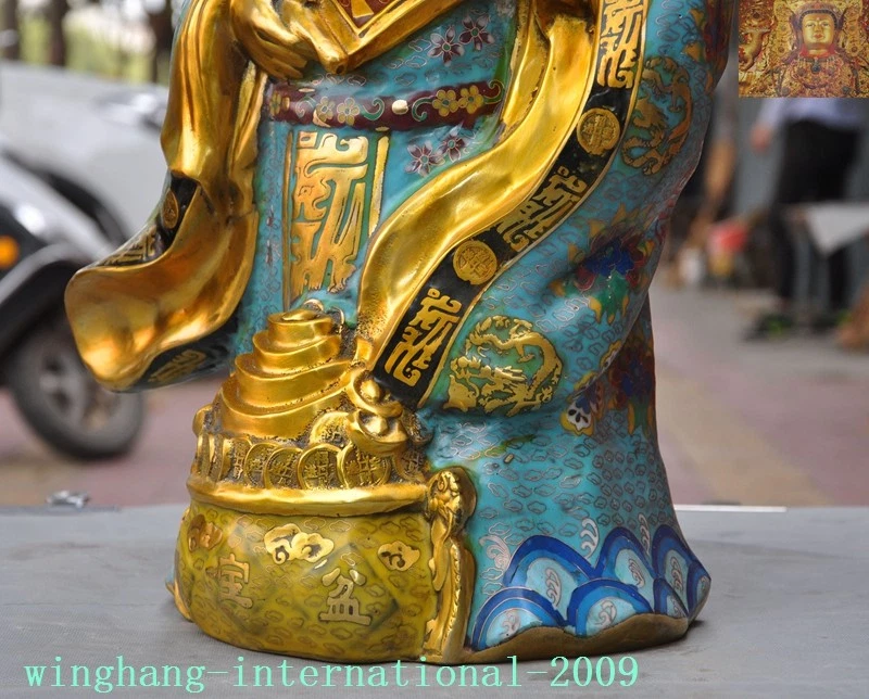 This stunning bronze gilt Cloisonne Enamel statue of Mammon Jambhala is absolutely breathtaking! The intricate details and vibrant colors make it a true masterpiece. At 22.4 inches tall and weighing 24 kg, it has a substantial, high-quality presence. The craftsmanship is exceptional, with perfect cloisonné enamel work that shines brilliantly. Arrived in perfect condition thanks to secure packaging. Free EMS shipping was fast—received it in just 10 days! A magnificent centerpiece that brings elegance and spiritual energy to any space. Highly recommended for collectors and devotees alike!