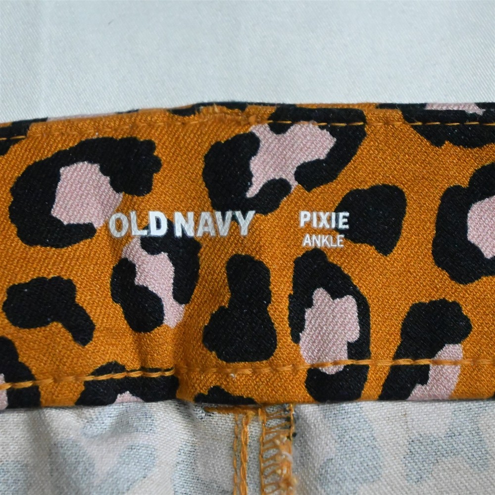 Old Navy Pants - Size 0 orange animal print pixie ankle: mid rise skinny cotton / spandex blend Excellent Condition! Measurements: Waist: 13.75 inches Rise: 8.5 inches Inseam: 25.75 inches Cuff Opening: 5 inches