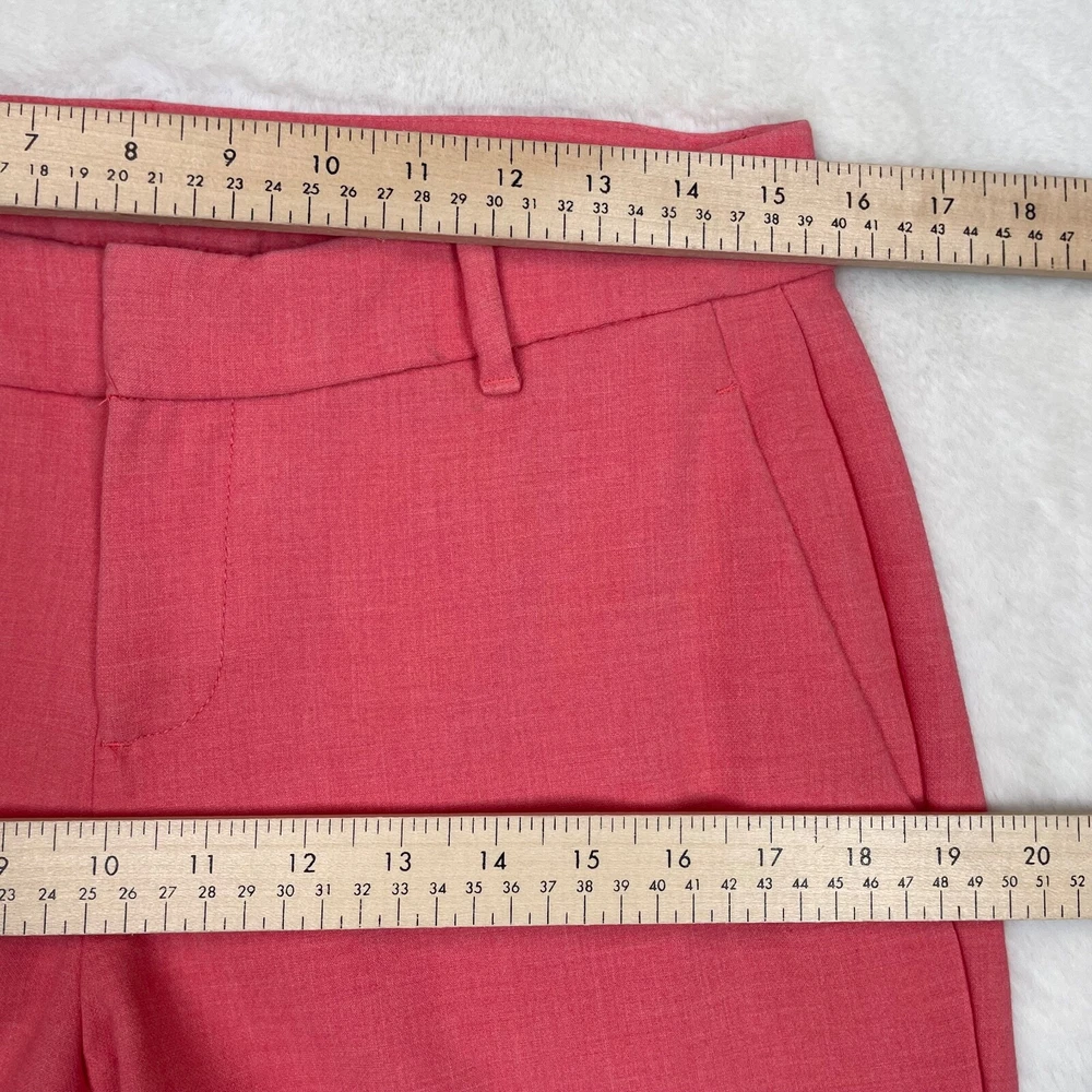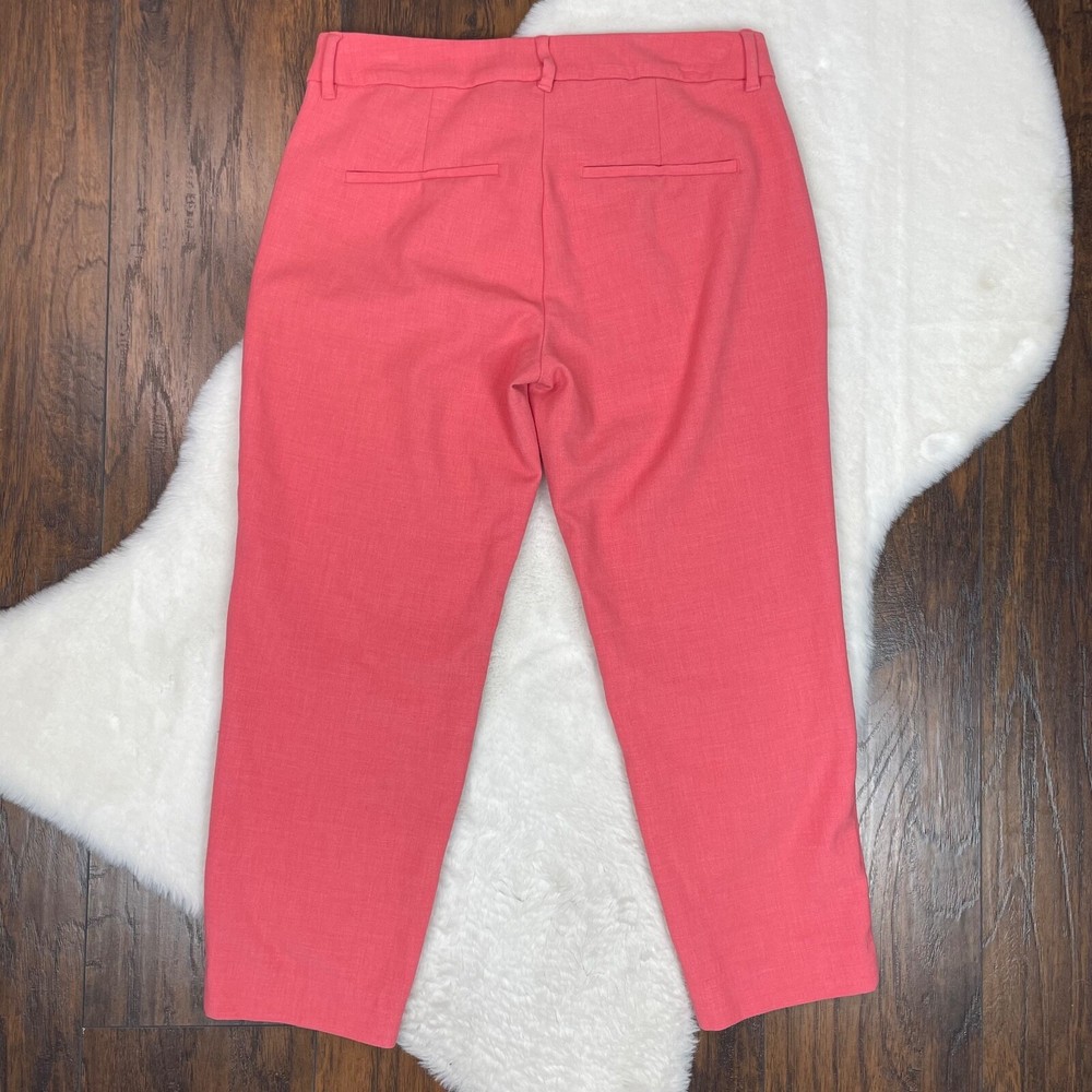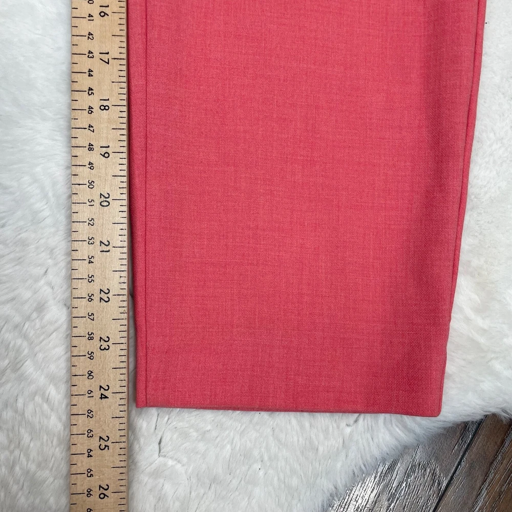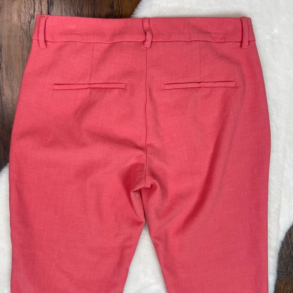 Old Navy Harper Pants Coral Orange Slim Leg Crop Mid-Rise Stretch Size 6 Measurements included in photos. Has a small dark spot on the left leg. Please see photos. No holes or tears....