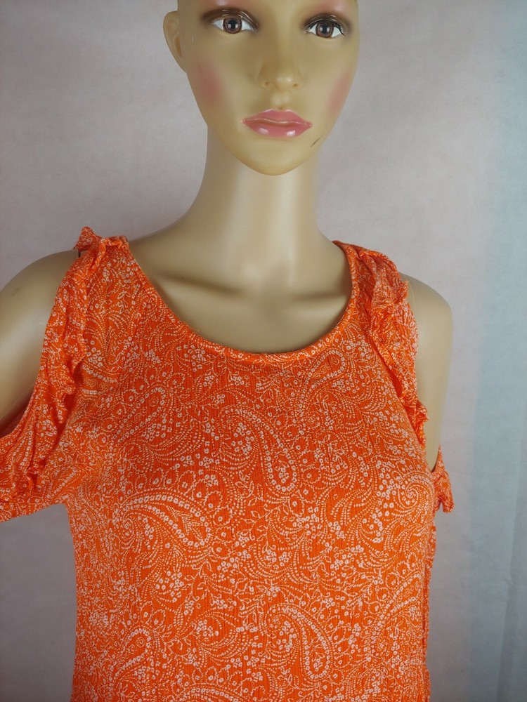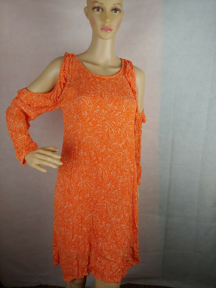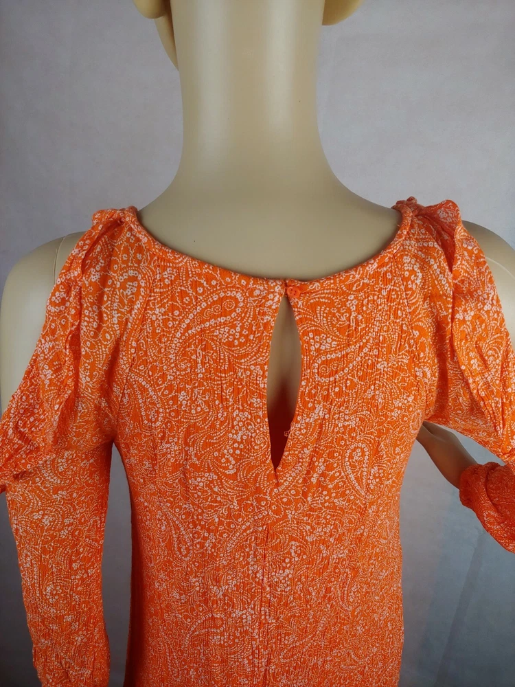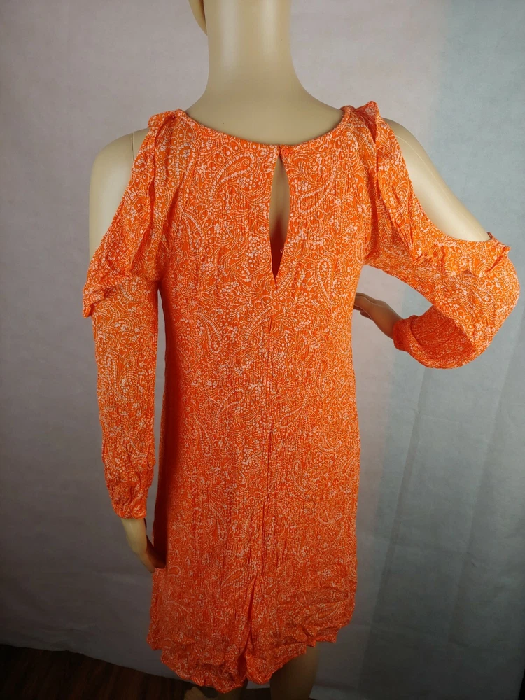 Old Navy Orange Cold Shoulder Women Casual Dress Size XS. Condition is Pre-owned. Shipped with USPS First Class Package.box #16...