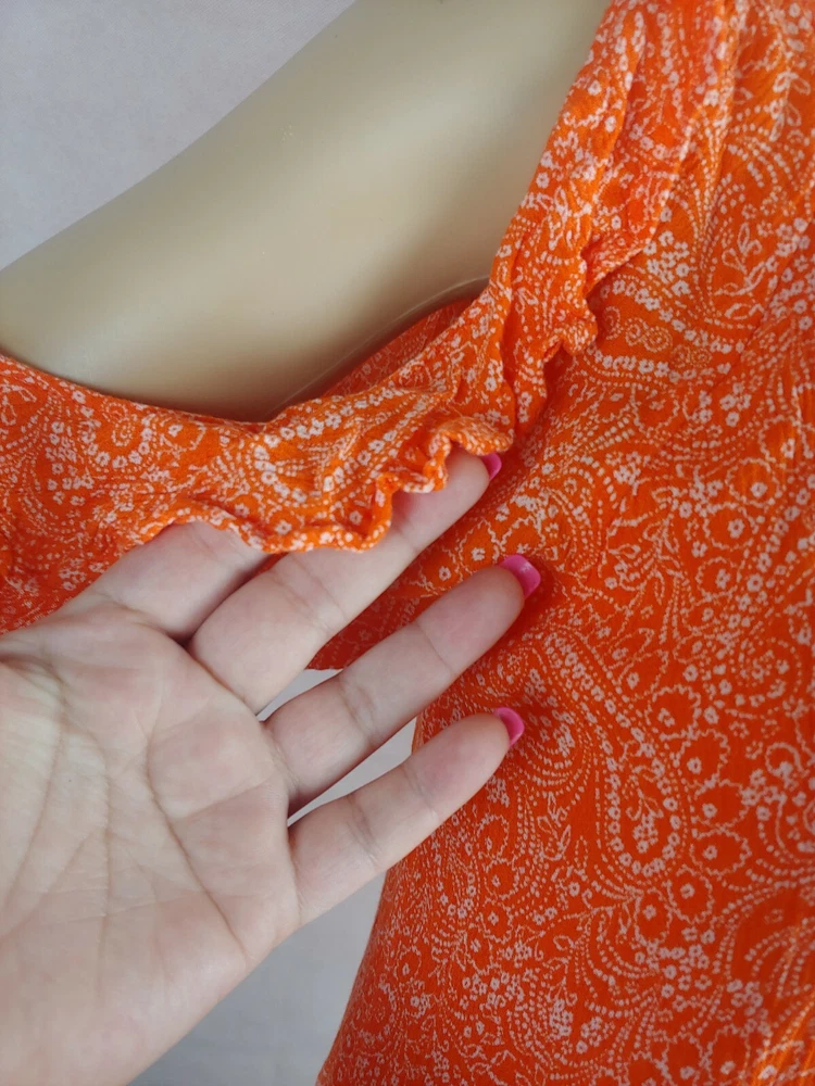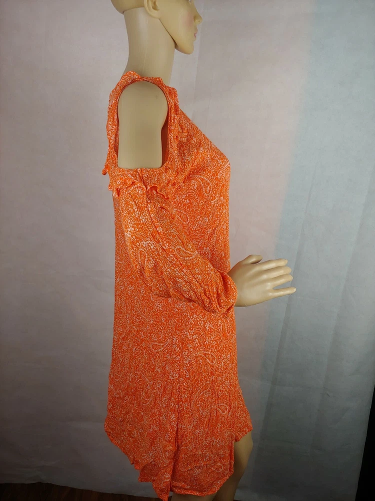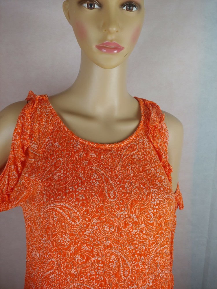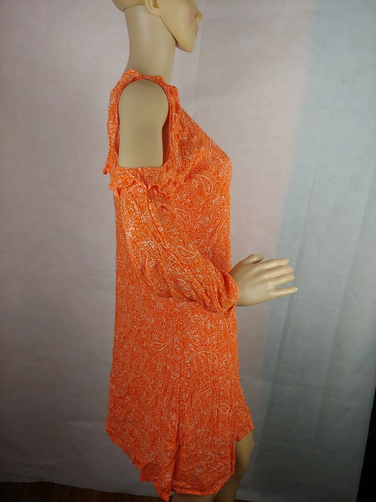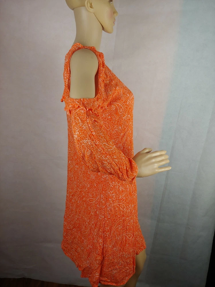 Old Navy Orange Cold Shoulder Women Casual Dress Size XS. Condition is Pre-owned. Shipped with USPS First Class Package.box #16...