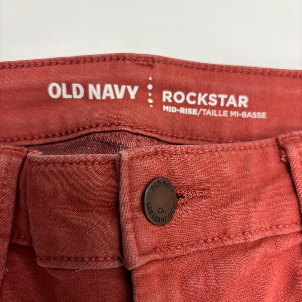 Old Navy Rockstar Mid Rise Skinny Women's size 8 Terracotta Orange Denim Jeans Great Condition! Waist: 27" Rise: 9" Inseam: 27" Leg Opening: 10" All measurements are approximate and are taken while la...