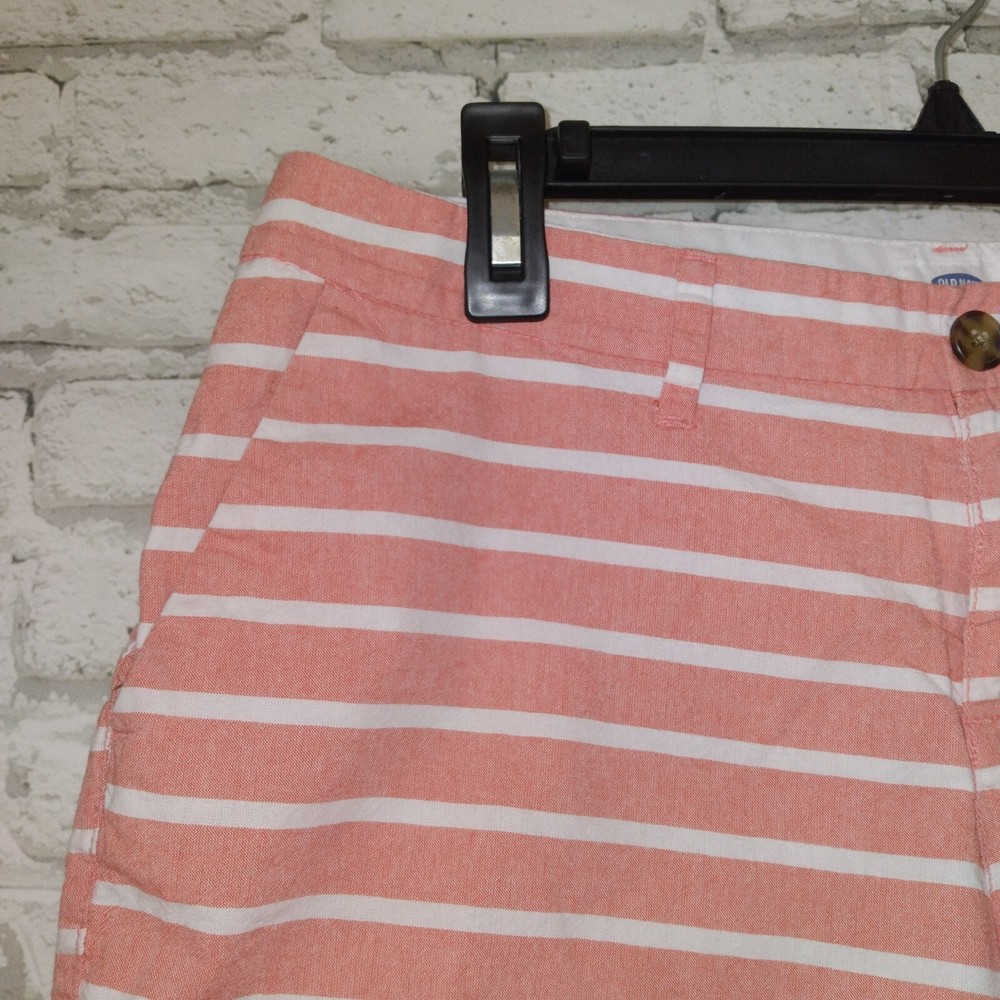 Old Navy Shorts Women's 4 Orange Striped Mid Rise Chino Pockets Cotton Preppy N on-functional Back Pockets Same/next day shipping! Save my store for coupons, discounts and sales! Thank you for shoppin...
