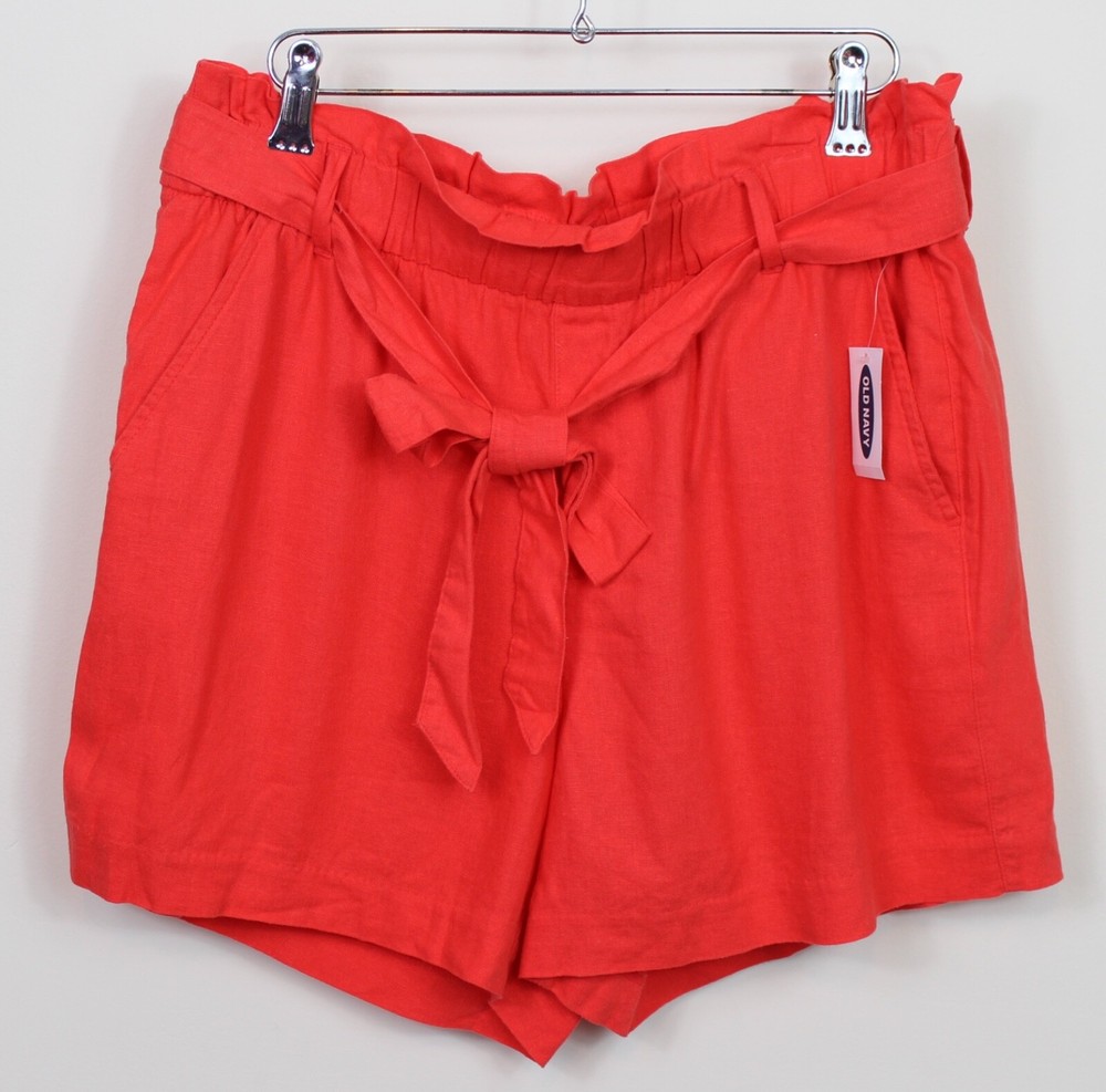 Old Navy Shorts Women’s Orange Linen Blend Belted Everyday Mid Rise! Size 12. Waist 32” by Rise 12”. New With Tags!...