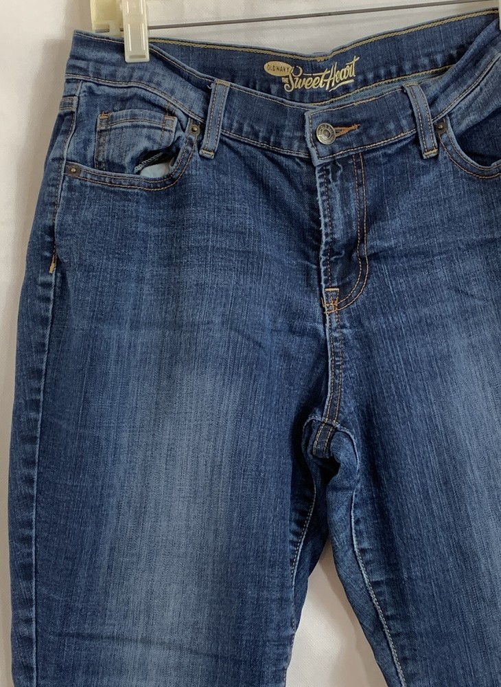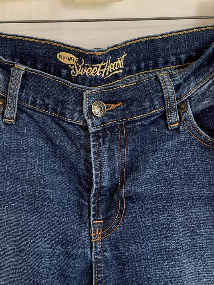Old Navy The Sweetheart Skinny Blue Denim Distressed Jeans. Size: 10 Short. Mid Rise. Cotton Blend. 84% Cotton, 14% Polyester 2% Spandex. Orange Top Stitching. 5 Pockets. Belt Loops. Stretch. Measurements taken flat unstretched: Waist: 16.5" Inseam: 27.5" Rise: 9.5" Length: 38" Side Seam to Side Seam at Hemline: 6.5" Please check out my ebay store for more g 9 reat deals where you can search by category! Standard shipping is First Class Mail. International shipping options include First Class International and Priority Mail International. International shipments will be shipped with insurance and customs form will be completed based on final sales price due to insurance requirements. Payment is expected within 5 days of purchase, please. For combined shipping rates, please place all items in the shopping cart and request an invoice. If you are not satisfied for any reason with the item purchased, you may return it for a full refund of the purchase price (less shipping charges) provided the item is in its original condition as shipped to buyer. Buyer will pay return shipping costs. I add new items daily, so add me to your favorite sellers and check back often! I sell items in as found condition. I leave all dry cleaning/laundering of items to the buyer as everyone has their own preferred methods and detergents. Thank you. I appreciate positive feedback.