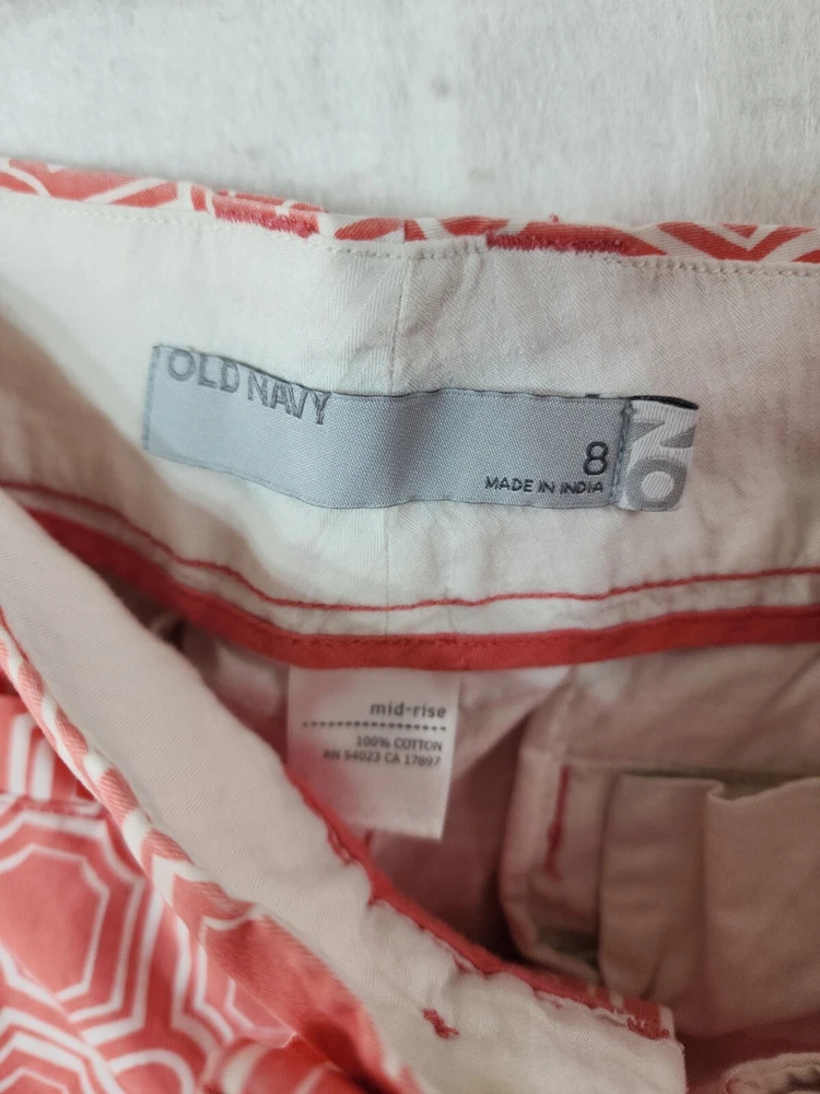 Women's Old Navy Orange Geometric Mid-Rise Casual shorts in Tag size 8. See photos for an accurate description and actual measurements. We ship daily so expect your purchase to arrive quickly....