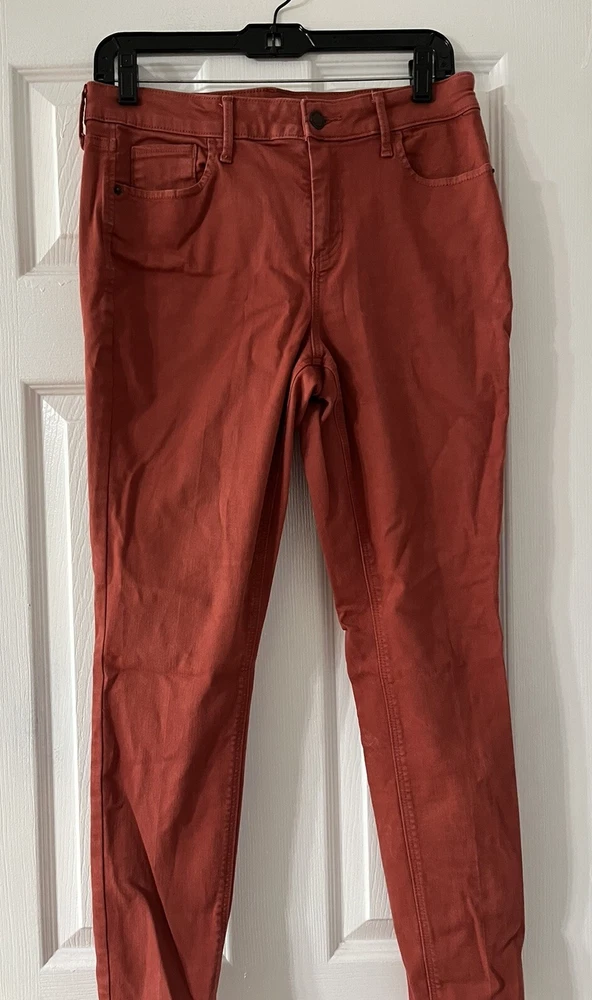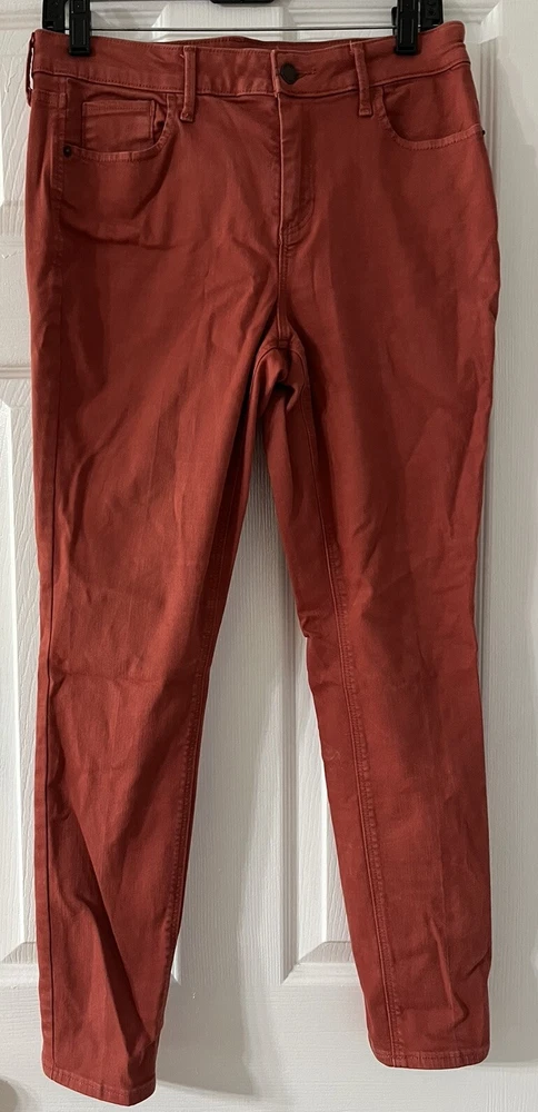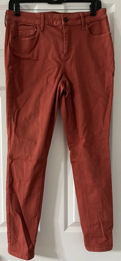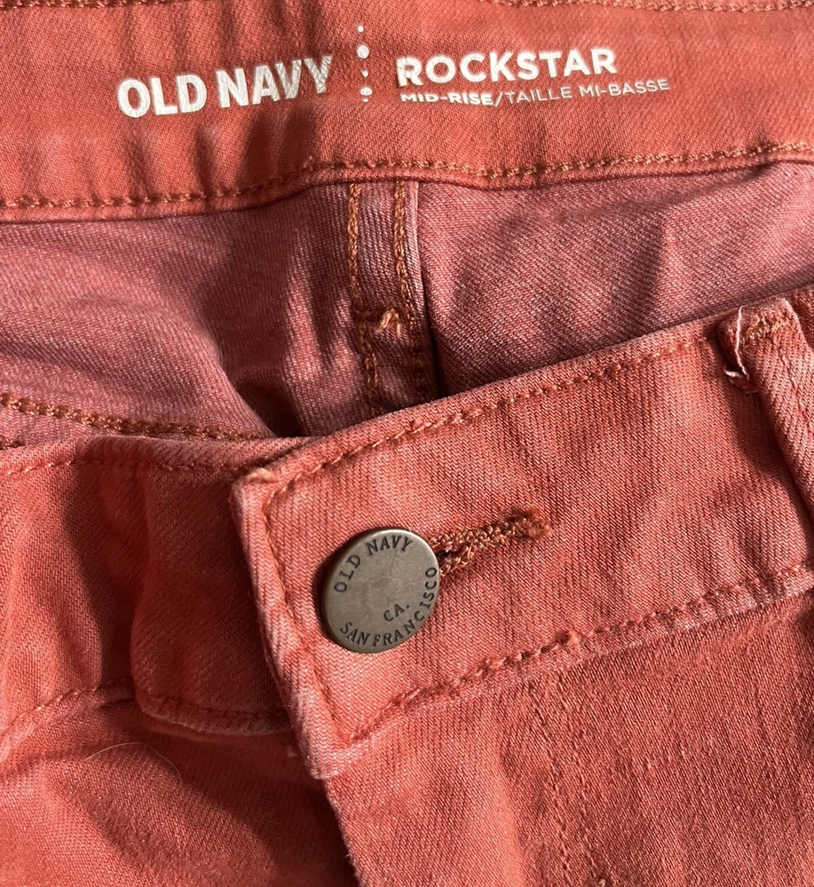 Old Navy Womens Pants 12 Rockstar Orange Mid Rise Cotton Blend Denim Straight, mid rise, made China, 80% cotton, 20% polyester, waist 30”, inseam 27”, length 37”,...