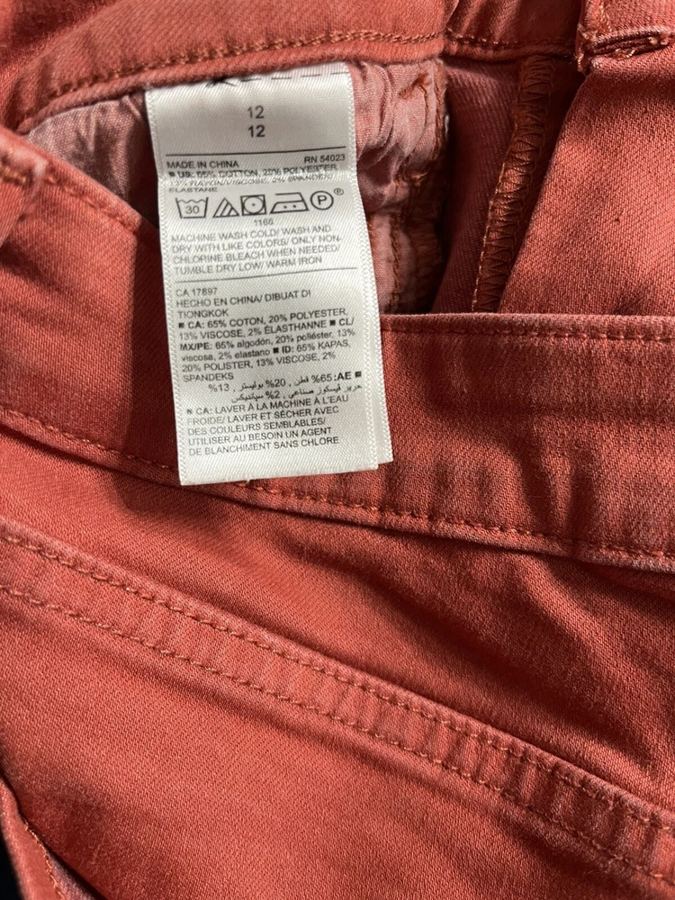 Old Navy Womens Pants 12 Rockstar Orange Mid Rise Cotton Blend Denim Straight, mid rise, made China, 80% cotton, 20% polyester, waist 30”, inseam 27”, length 37”,