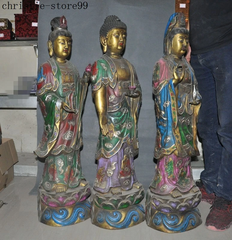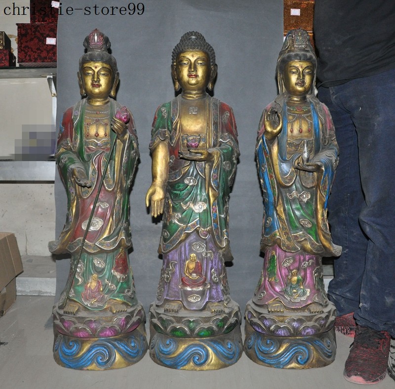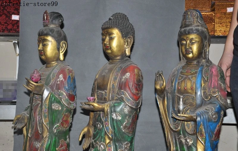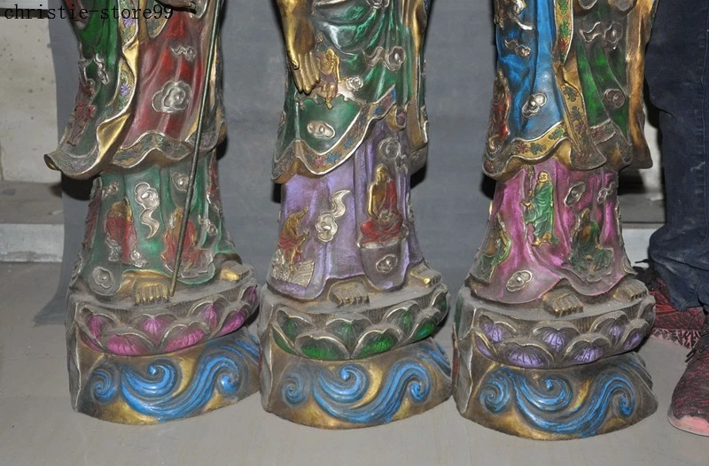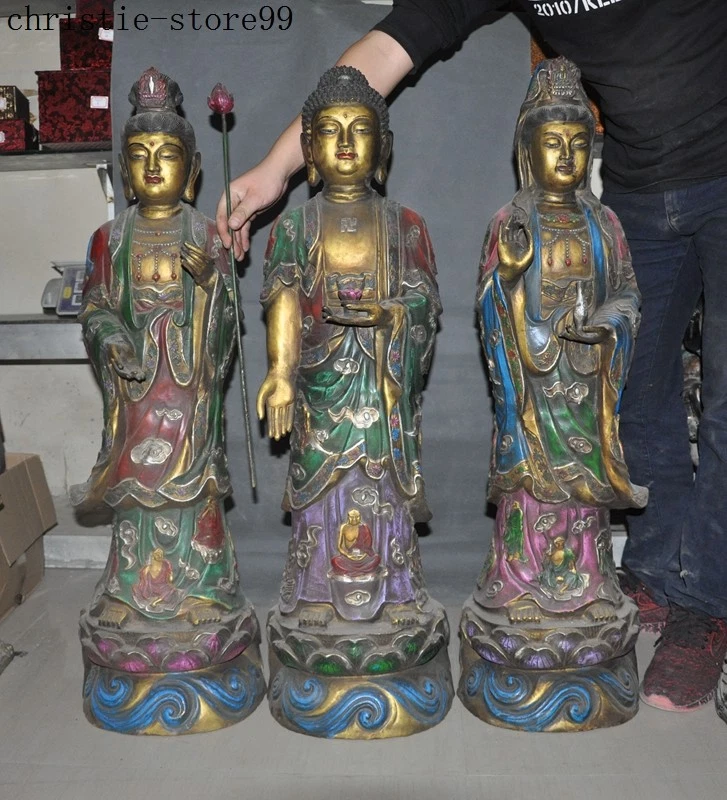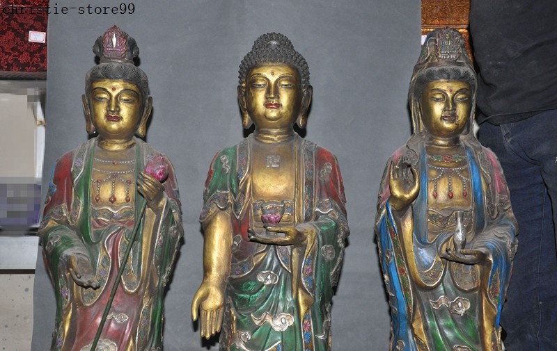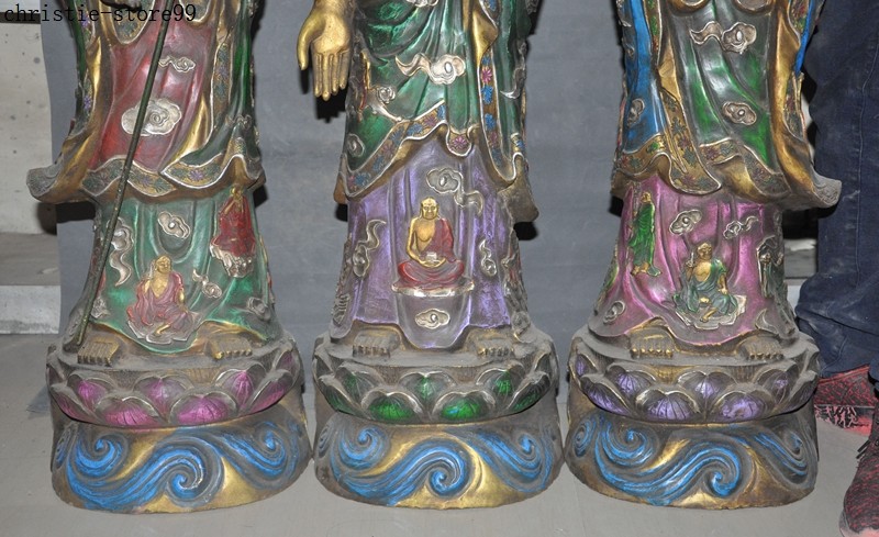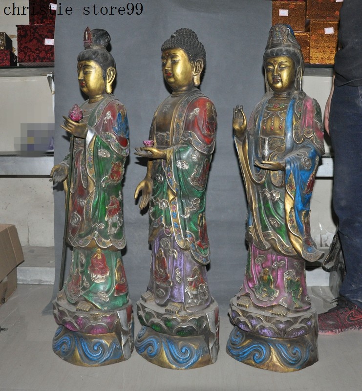 Size: Height: 38 inch .Long: 11.2 inch . breadth: 9.2 inch Size: Height: 95 cm .Long: 28 cm . breadth 23 cm Weight: 82.8 KG----included the weight of packing materials Materials: Bronze Gilt Painted Condition: Good condition Origin: China