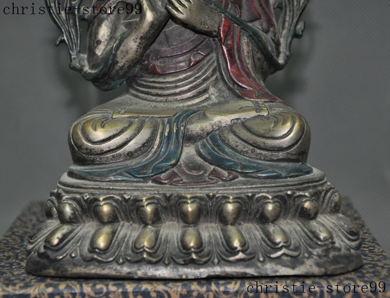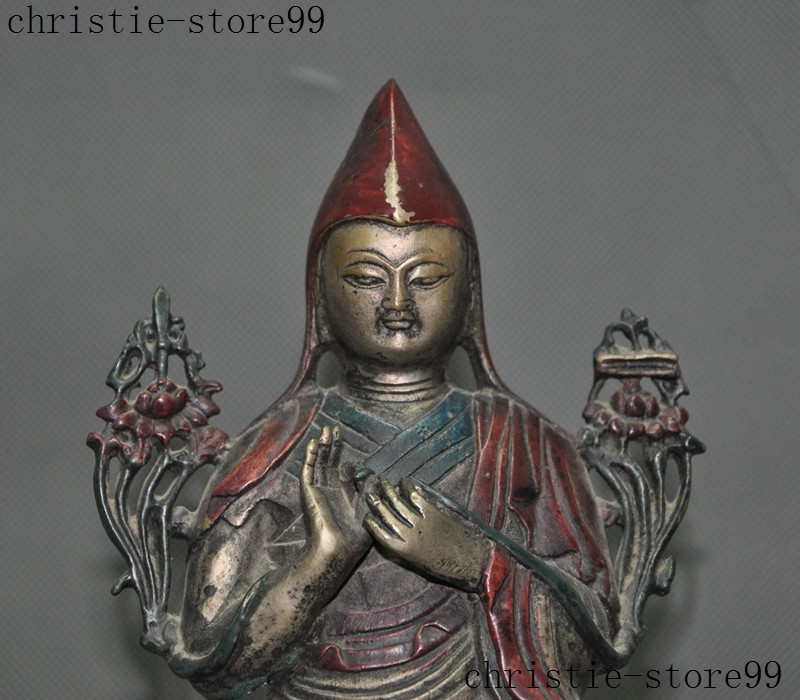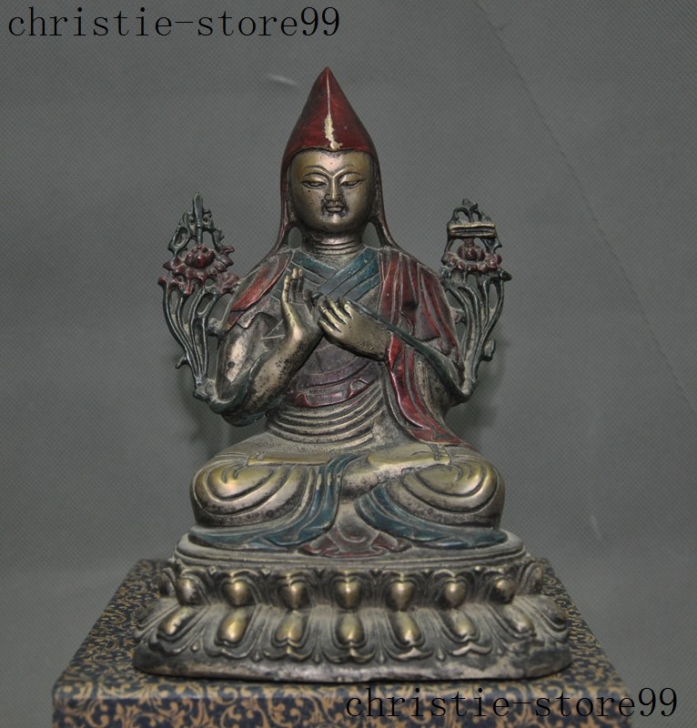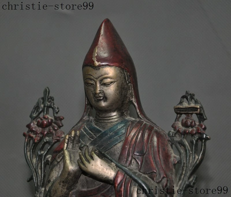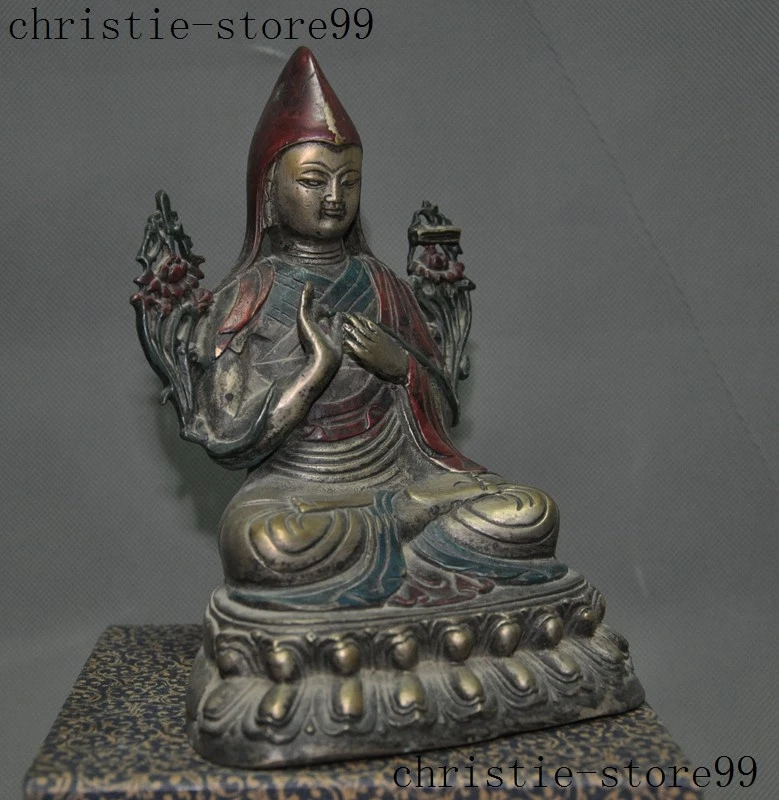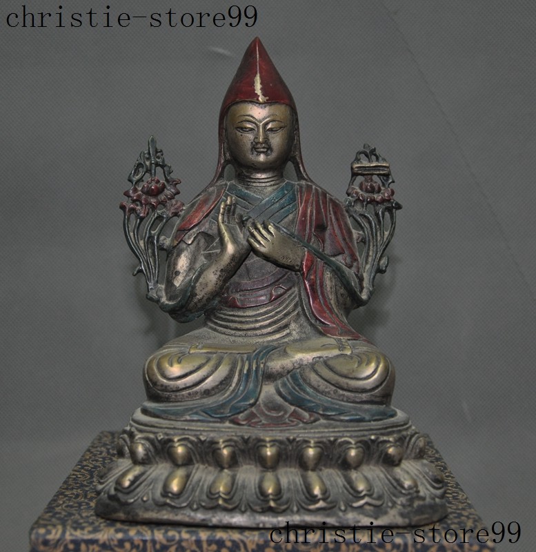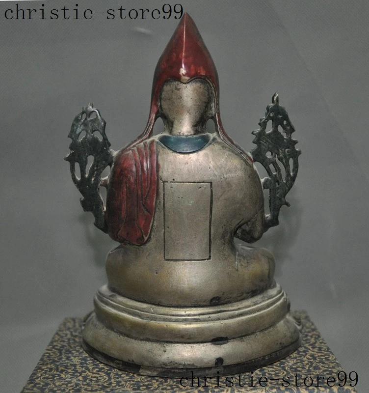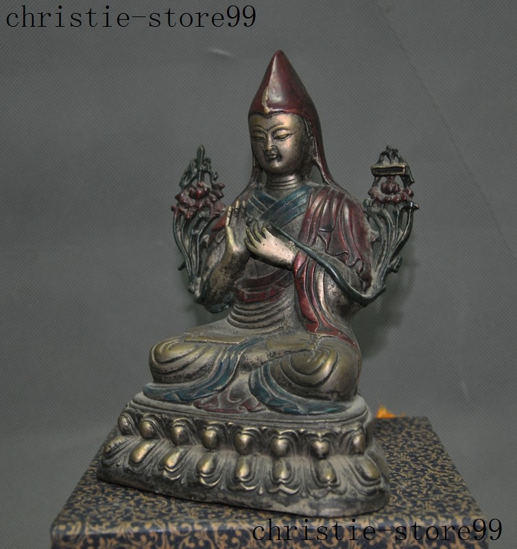 | Seller Notes | “7" Old Tibet Joss Buddhism Silver Painted Tsongkhapa Master Shamanism Buddha Statue” |