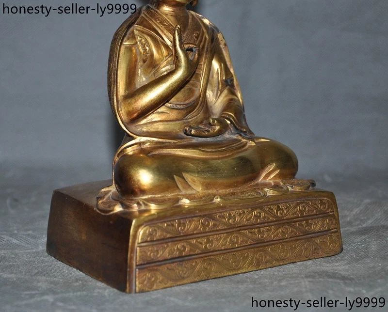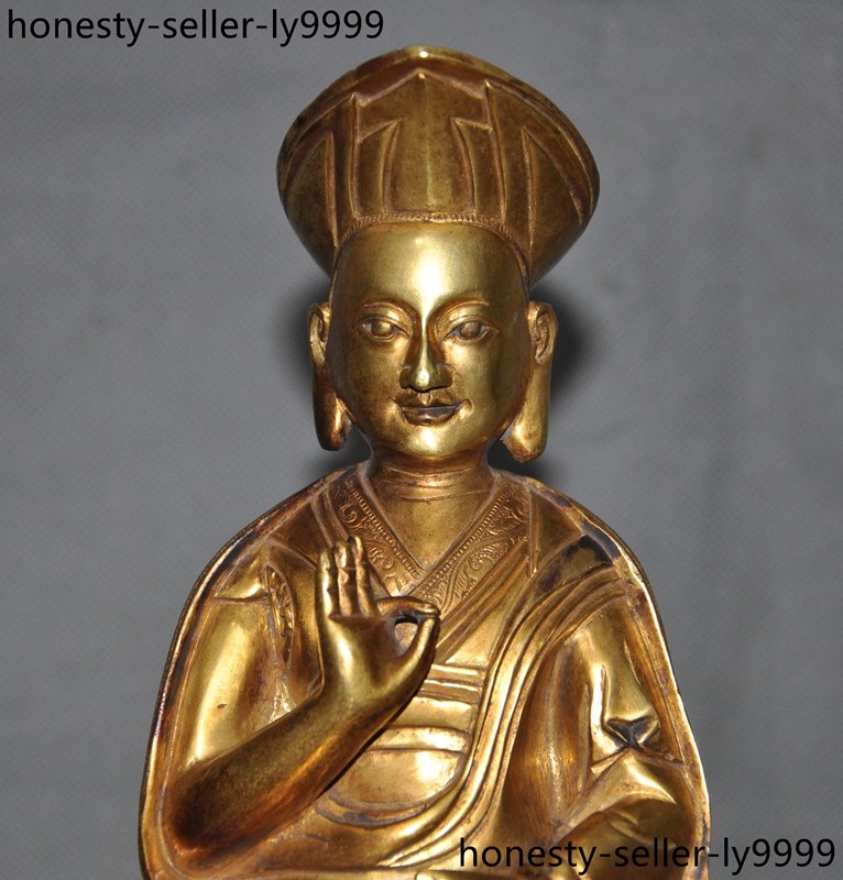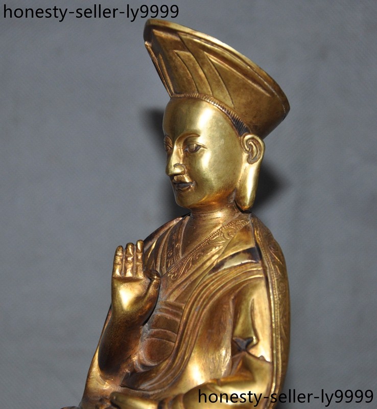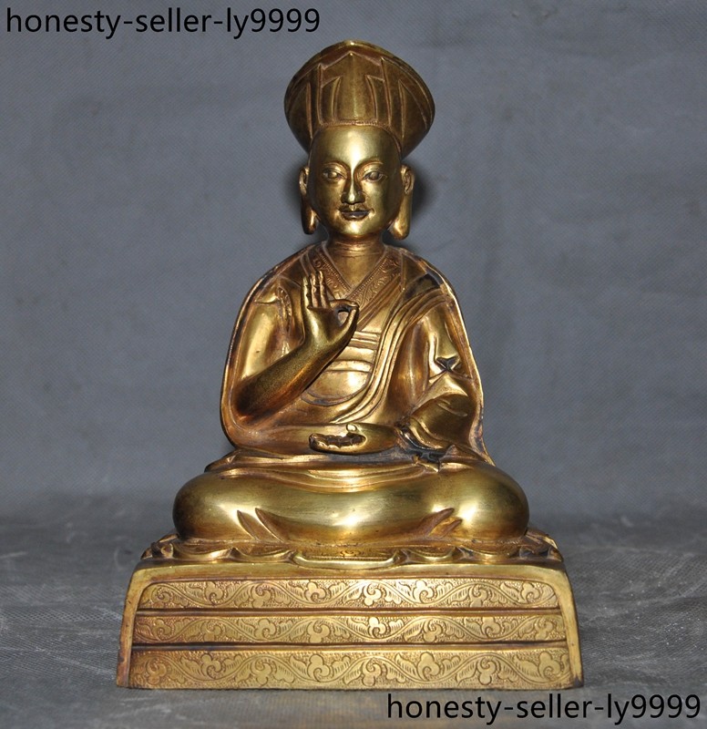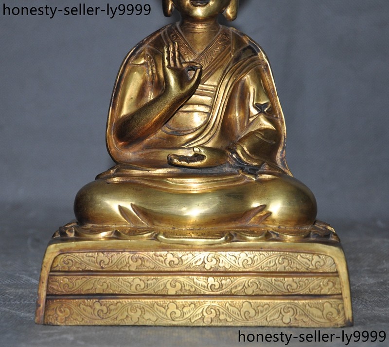 Here is an Old Tibetan Bronze Gilt Buddhism Joss Tsongkhapa Master Shamanism Buddha Statue , As you can see the image, It is in good condition, and was created by skilled craftsmen in traditional style with fine handcrafts . This is a great piece of valuable collection, a valuable personal alter or a very good present. the handwork is very fine with incredible detailing. Don't miss out this chance to get it .Wish you good luck! Size: Height : 8.4 inch Long: 5.6 inch Width : 4 inch Size: Height: 21 cm Long: 14 cm Width :10 cm Weight: 3 KG----included the weight of packing materials Materials: bronze 24k gold gilt Condition: Good condition Origin: China Shipping cost by Air Mail EMS (7-15 days ) : $Free we only accept paypal if you have any problems on payment,please inform us via ebay message. 1.We ship regularly Monday to Saturday (Beijing Time) and will ship your items within 1-2 days upon payment received. If we can not ship your item on time for some special reason, we will inform you via ebay message. 2.We are not responsible for nor can we offer any specific advices on import fees, duty, customs, VAT or taxes that you may have to pay when your order arrives. 3.We ship the items according to your Paypal address except the special notes from buyers! Be sure that your Paypal address is correct when you buy the items in ebay. We do not take responsibility for item loss due to wrong address. 4.Estimated delivery time: Shipping may be influenced by holidays, events and some other uncertainties. If you dislike the seemingly long shipping time, please think carefully to bid or buy the item. We do not want to get a negative or neutral or low DSR score because of shipping time. If you have special demand on shipping time, please inform me via ebay message We want to give you a happy shopping experience, when you are not satisfied with our products, please contact us on EBAY, we are responsible seller, we will solve your problem, please believe us,thanks! If you're in any way dissatisfied with your purchase, let me know through "MY MESSAGES" or "Ask Seller Questions" or our mailbox. We will solve it for you. We are committed to ensuring that you are completely satisfied with every transaction. 100% Satisfaction guaranteed ! We will reply your mail with in 24 hours normally. Sometimes have a little delay due to the weekends or holidays. If you can't get our mail after 48 hours, please check your spam or contact to us via Ebay.180505XDHP In addition to contact us through eBay or you can send your message to our mailbox. Any question, please feel free to contact us, we will always do our best to serve you. Business Hours: Mon-Sat 9:00-17:30:00 (HongKong Time GMT+8:00)