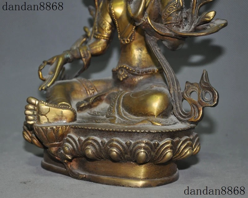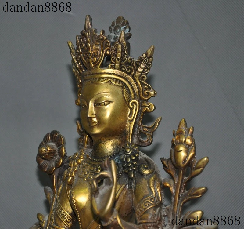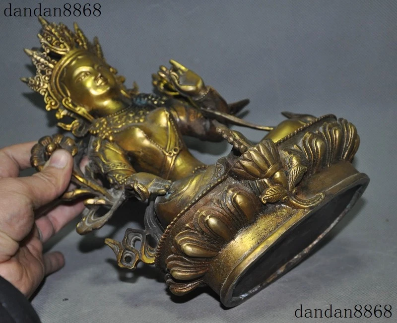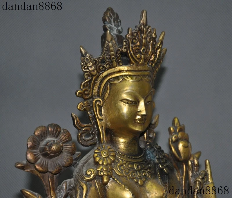 Here is an Old Tibetan Buddhism Joss Bronze Gilt Green Tara Guanyin Kuan Yin Buddha Statue , As you can see the image, It is in good condition, and was created by skilled craftsmen in traditional style with fine handcrafts . This is a great piece of valuable collection, a valuable personal alter or a very good present. the handwork is very fine with incredible detailing. Don't miss out this chance to get it .Wish you good luck! Size: Height: 11.2 inch .Long: 8.2 inch . breadth: 5.6 inch Size: Height: 28 cm .Long: 20.5 cm . breadth 14 cm Weight: 3.4 KG----included the weight of packing materials Materials: Bronze Gilt Condition: Good condition Origin: China Shipping cost by EMS Express Mail ( 7------15 days ) : $Free we only accept paypal if you have any problems on payment,please inform us via ebay message . 1.We ship regularly Monday to Saturday (Beijing Time) and will ship your items within 1-2 days upon payment received. If we can not ship your item on time for some special reason, we will inform you via ebay message. 2.We are not responsible for nor can we offer any specific advices on import fees, duty, customs, VAT or taxes that you may have to pay when your order arrives. 3.We ship the items according to your Paypal address except the special notes from buyers! Be sure that your Paypal address is correct when you buy the items in ebay. We do not take responsibility for item loss due to wrong address. 4.Estimated delivery time: Shipping may be influenced by holidays, events and some other uncertainties. If you dislike the seemingly long shipping time, please think carefully to bid or buy the item. We do not want to get a negative or neutral or low DSR score because of shipping time. If you have special demand on shipping time, please inform me via ebay message. We want to give you a happy shopping experience, when you are not satisfied with our products, please contact us on EBAY, we are responsible seller, we will solve your problem, please believe us,thanks! If you're in any way dissatisfied with your purchase, let me know through "MY MESSAGES" or "Ask Seller Questions" or our mailbox. We will solve it for you. We are committed to ensuring that you are completely satisfied with every transaction. 100% Satisfaction guaranteed ! We will reply your mail with in 24 hours normally. Sometimes have a little delay due to the weekends or holidays. If you can't get our mail after 48 hours, please check your spam or contact to us via Ebay. In addition to contact us through eBay or you can send your message to our mailbox. Any question, please feel free to contact us, we will always do our best to serve you. Business Hours: Mon-Sat 9:00-17:30:00 (HongKong Time GMT+8:00) 170127 jlh