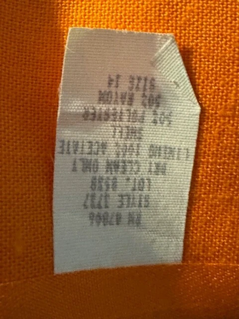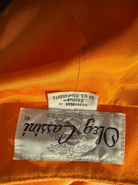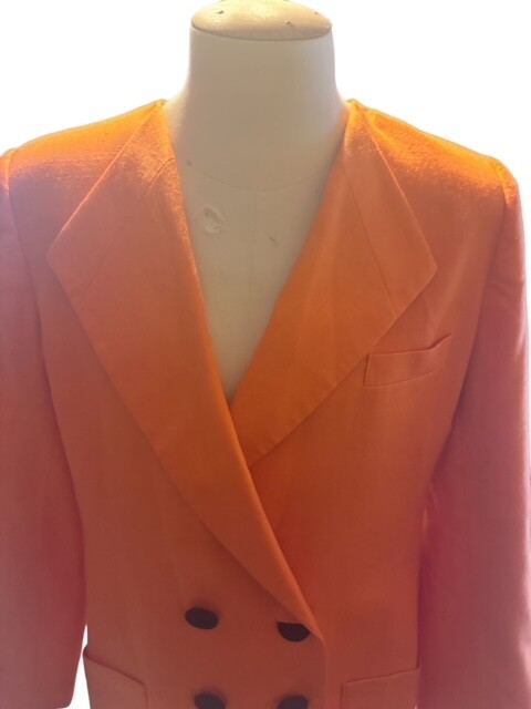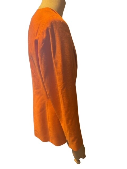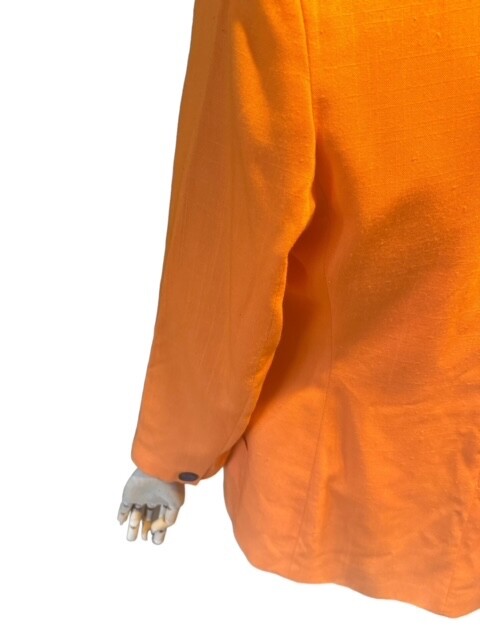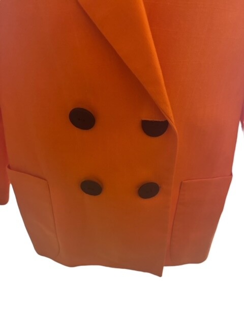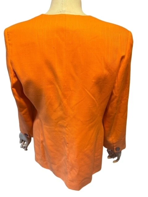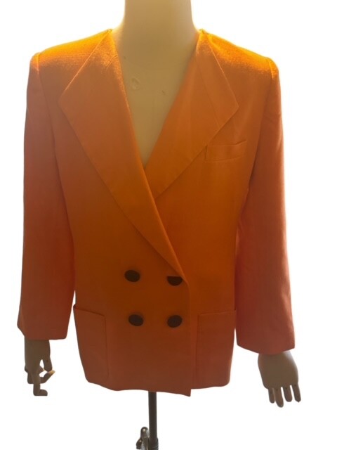 Alecia’s A Bit of Everything Oleg Cassini Orange Double Breasted Blazer Size 14 with shoulder pads 4 button, & 3 pocket fully lined 50% polyester 50 % rayon shoulder to hem 29.5", sleeve 24", pit to pit 20.5", shoulder to shoulder 17.5" Please check out my store for other fun, useful, and collectible items.