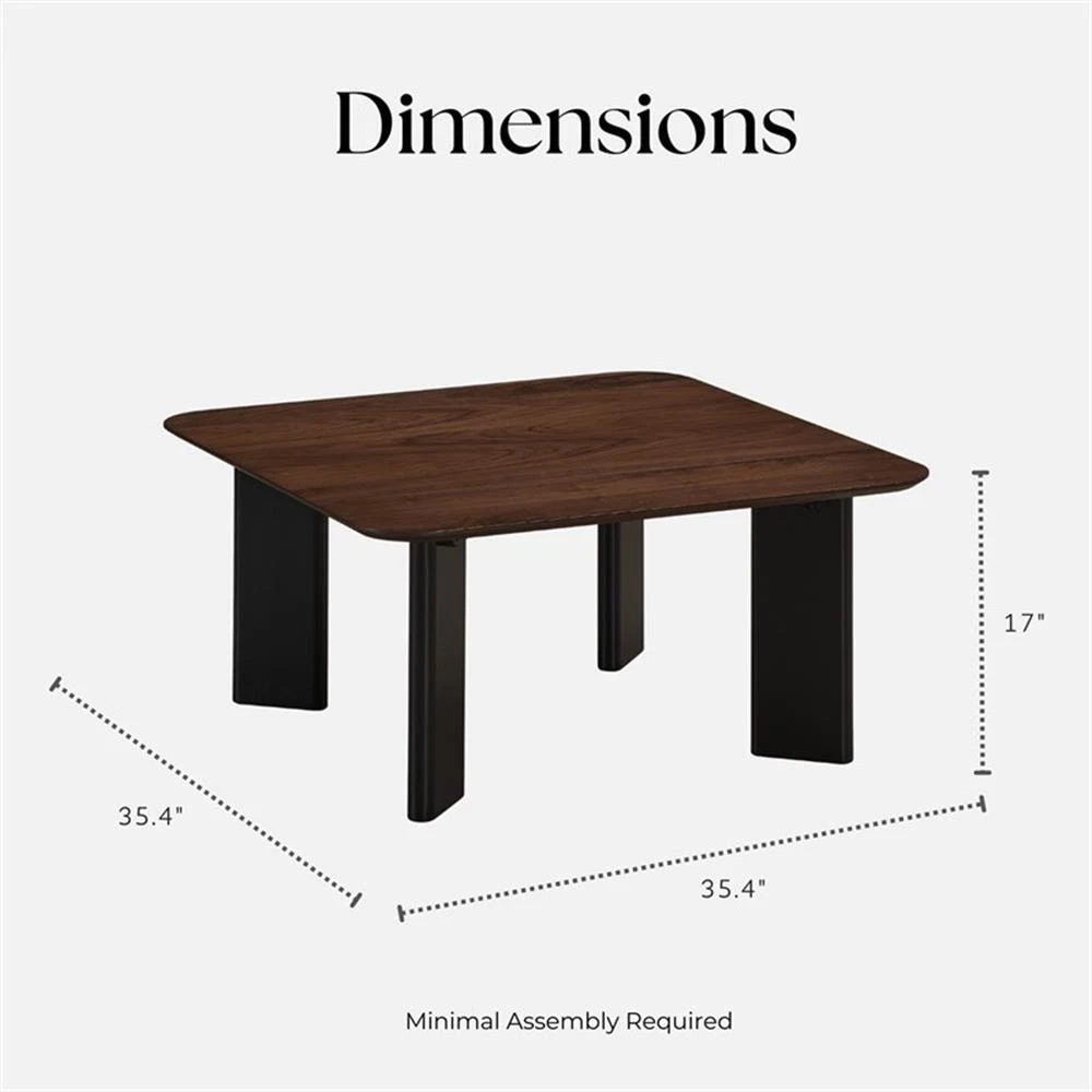 Introducing the Joss Coffee Table, a stunning blend of contemporary design and timeless craftsmanship. Featuring a square shape with rounded corners, this coffee table adds a touch of sophistication to any living room. The solid wood legs provide stability and durability, while the walnut or ash veneered top showcases the natural beauty of the wood grain. With its versatile size and sleek profile, the Joss Coffee Table offers ample surface area for placing drinks, books, and decor items. Elevate your living space with the Joss Coffee Table, a functional and elegant centerpiece that effortlessly complements any interior style. Features: Material: Solid and Engineered Wood Finish: Walnut Walnut veneered top Solid rubberwood legs Modern design Minimal assembly required Specifications: Product Dimensions: 17"H x 35.4"W x 35.4"D Product Weight: 39.6 lbs