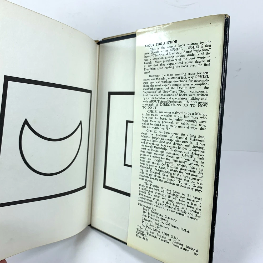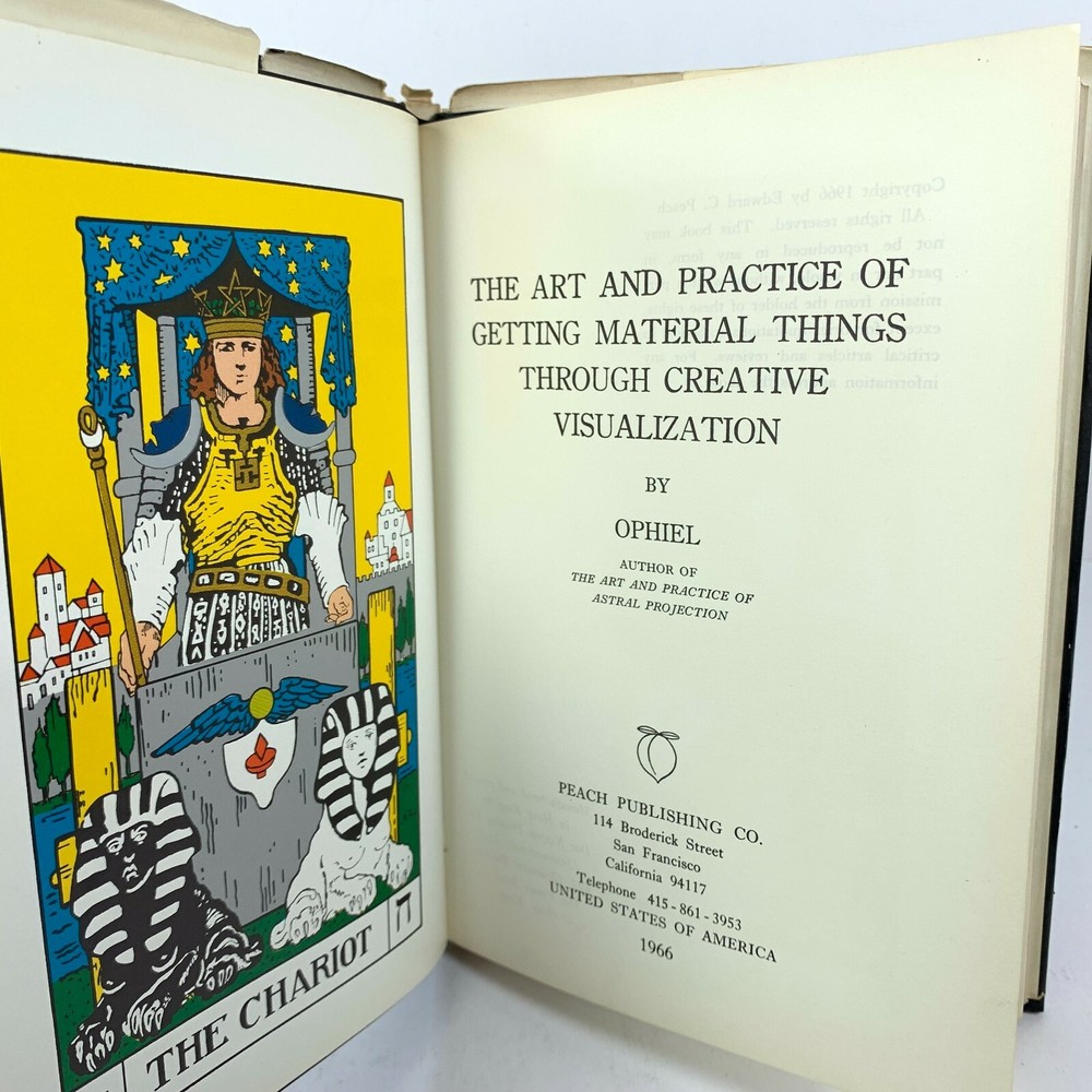 Art & Practice of Getting Material Things Through Creative Visualizations by Ophiel 1966 1st Edition Peach Publishing Co 1966 Light creasing and small tear on dust jacket, binding is tight, cover is clean, interior pages are crisp and clean, please examine all photos and ask any questions Very Rare - Item pictured is the exact one you will receive. We try hard to photograph to the best of our abilities any flaws and conditional issues so please see all photos for best idea of overall condition. Free Shipping, boxed with care