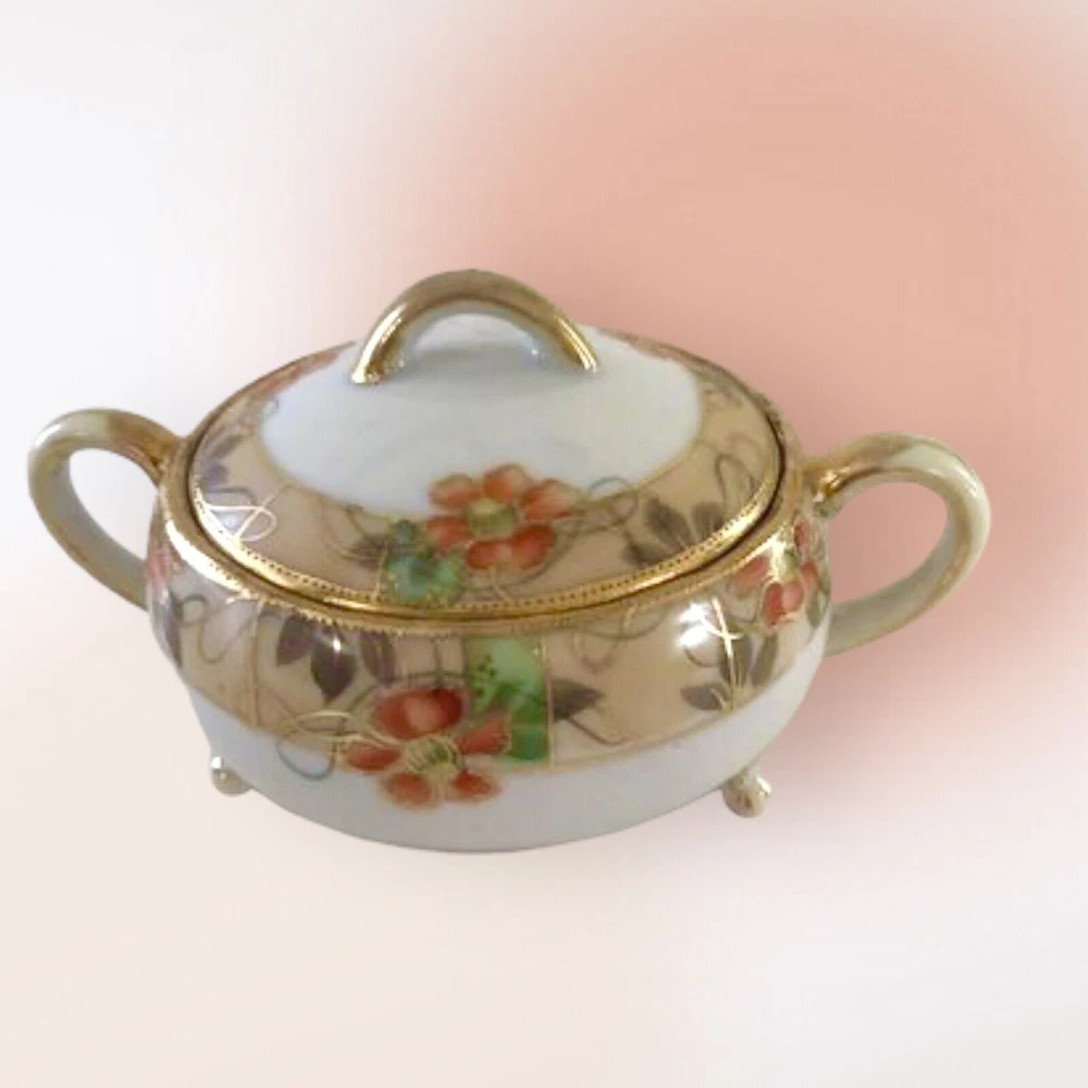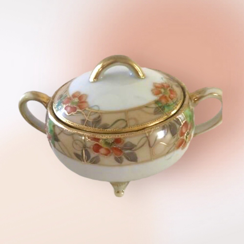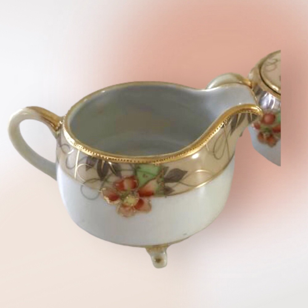 Orange Blossom Nippon Cream & Sugar Set Vintage Japan. Vintage Preowned Footed Nippon Creamer and Sugar bowl set. Very good condition no nicks, chips or cracks. Size 4” around x 2” high