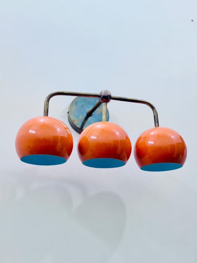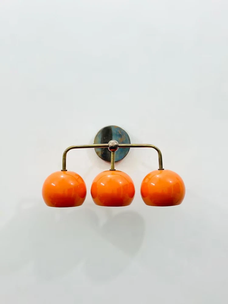 Materials: Brass, Metal Width: 7 inches Height: 7 inches Depth: 14 inches 1950s Mid Century Brass Italian Diabolo Wall Sconce Light Fixture 3 Bulb. PRODUCT DETAILS:- Product: Wall Sconce Material: Metal , Brass Size: Height-7" X Width-7" X Depth-14" inches Canopy: 4.5" Inches Wall Sconce Diabolo Modern Italian Wall Lights White Wall Fixture Light . This is Stilnovo Style light fixture is made with UL approved parts. We hand craft all of our light fixtures. This chandelier has been made with brass material. Minor variations in finish are an inherent characteristic of such material and add to the beauty and uniqueness of the product. BULB TYPE: • Requires Four (4) 15 watt bulb type A (not included). • E-12 or E-14 socket Rated with 125 voltage, 75 watt max. • 7 watt to 15 watt bulbs are recommended. • Incandescent Bulbs, Energy Saying, LED Bulbs.