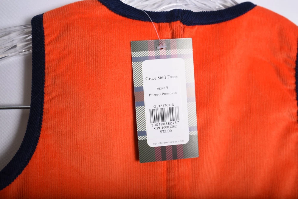 Orange CPC Corduroy Grace Shift Dress NWT girl - Size 5 Pumpkin 13" pit to pit, 23" length