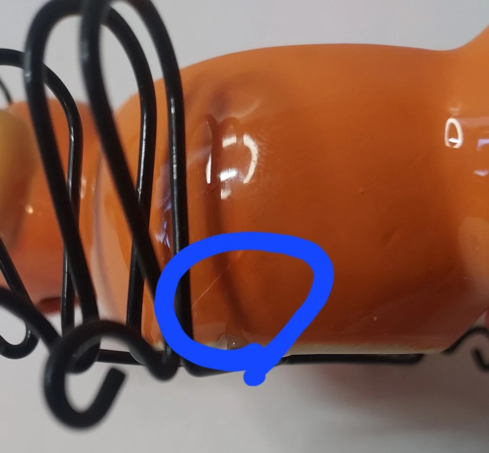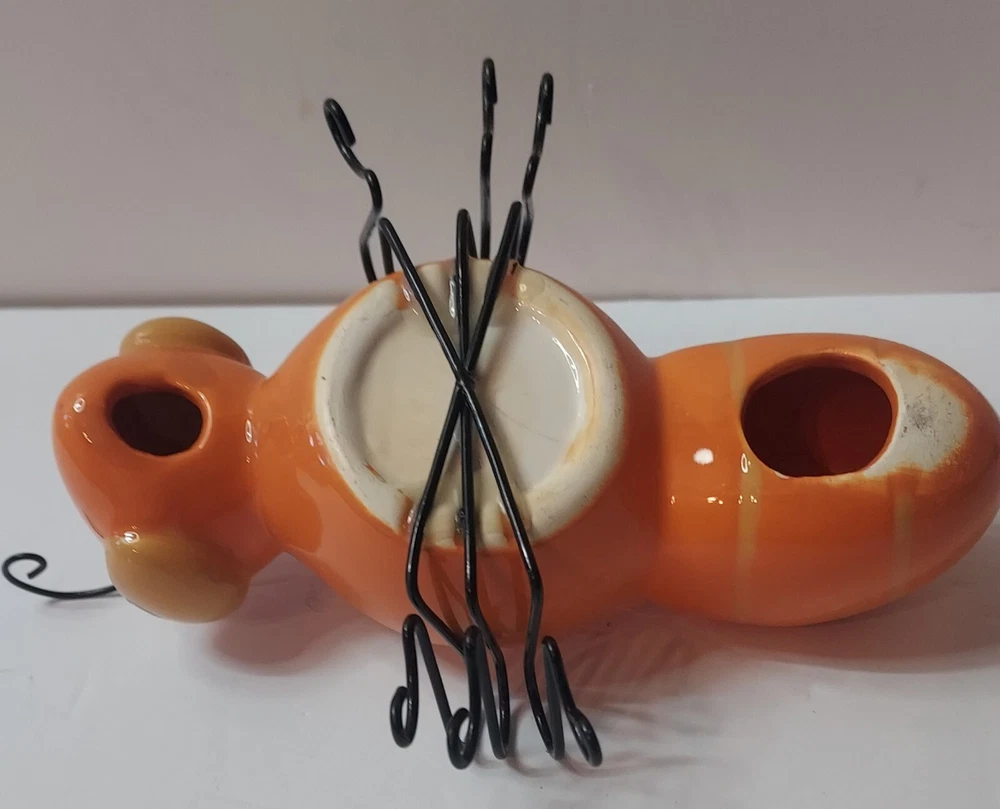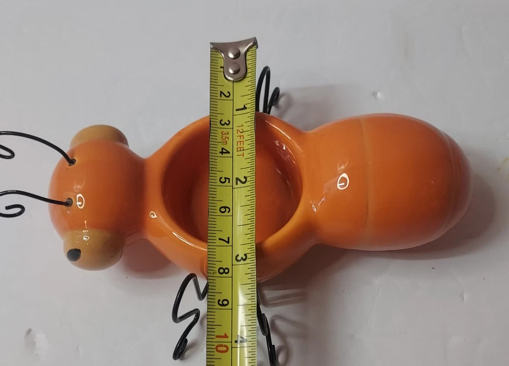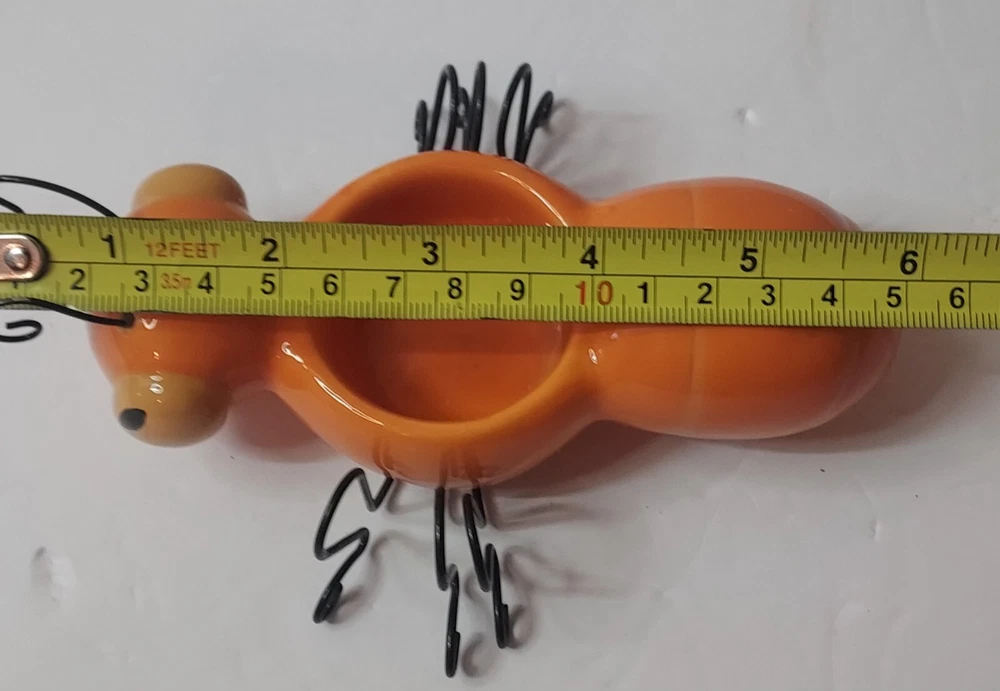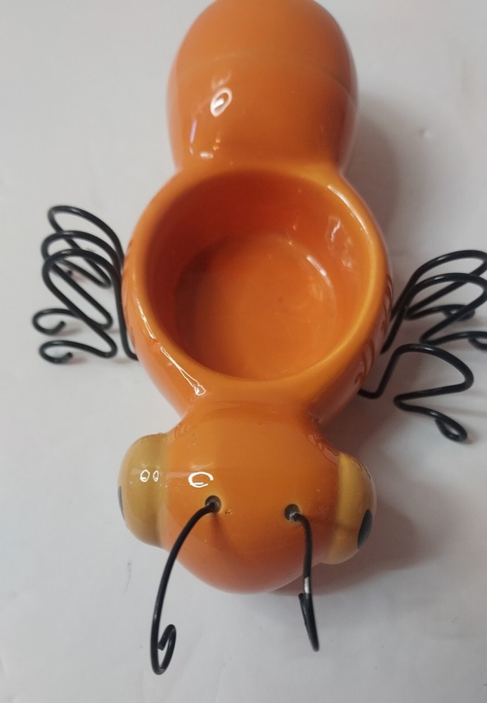 Add a touch of whimsy to your fall decor with this charming orange ceramic ant bug tealight candle holder. The insect-shaped holder has metal legs and a glossy finish, making it perfect for any room in your home. Use it as a centerpiece for your fall-themed dinner party or as a fun accent piece on your mantel. Crafted from high-quality ceramic and metal, this candle holder is easy to clean with a damp cloth. It measures 6" in length, 2" in height, and 3 1/2" leg to leg in width, making it a medium-sized piece that can fit almost anywhere. Whether you're an antique collector or simply appreciate unique decor, this item is sure to catch your eye. The tea light does have some slight scratches and a small chip, see pictures. Great decoration for fall.
