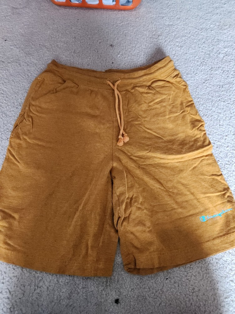 bCrafted for comfort and durability, these Champion kids' shorts are a versatile addition to any young athlete's wardrobe. The vibrant orange color combined with a classic athletic design makes them a standout choice for both sporty activities and casual wear. Made from a breathable mesh fabric, these shorts are equipped with an elastic waist featuring a drawstring closure for a secure and adjustable fit. The shorts are tailored to provide a regular fit in a size medium, suitable for boys who enjoy basketball or any active movement. Practicality is not overlooked, as they come with pockets for convenience and are machine washable for easy care. Embrace the cooler seasons of fall and spring with these versatile shorts, perfect for layering or as a standalone garment.