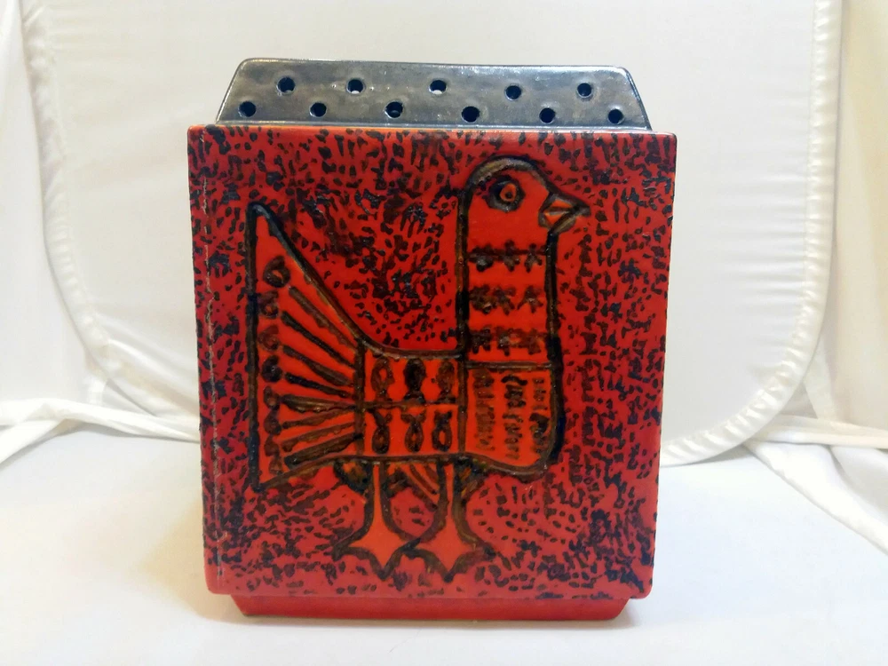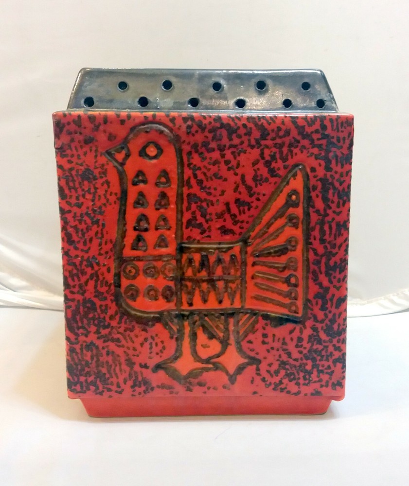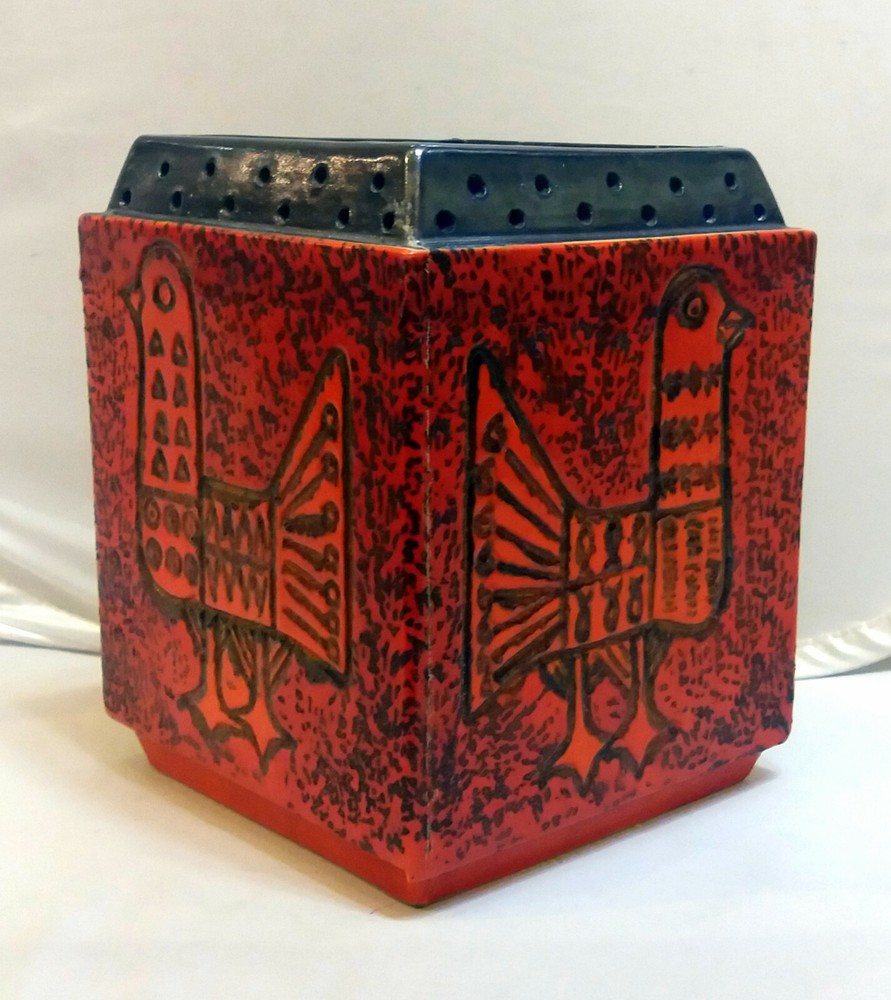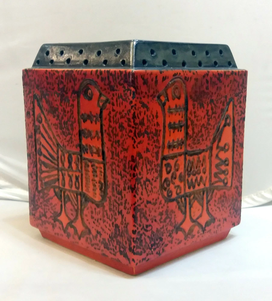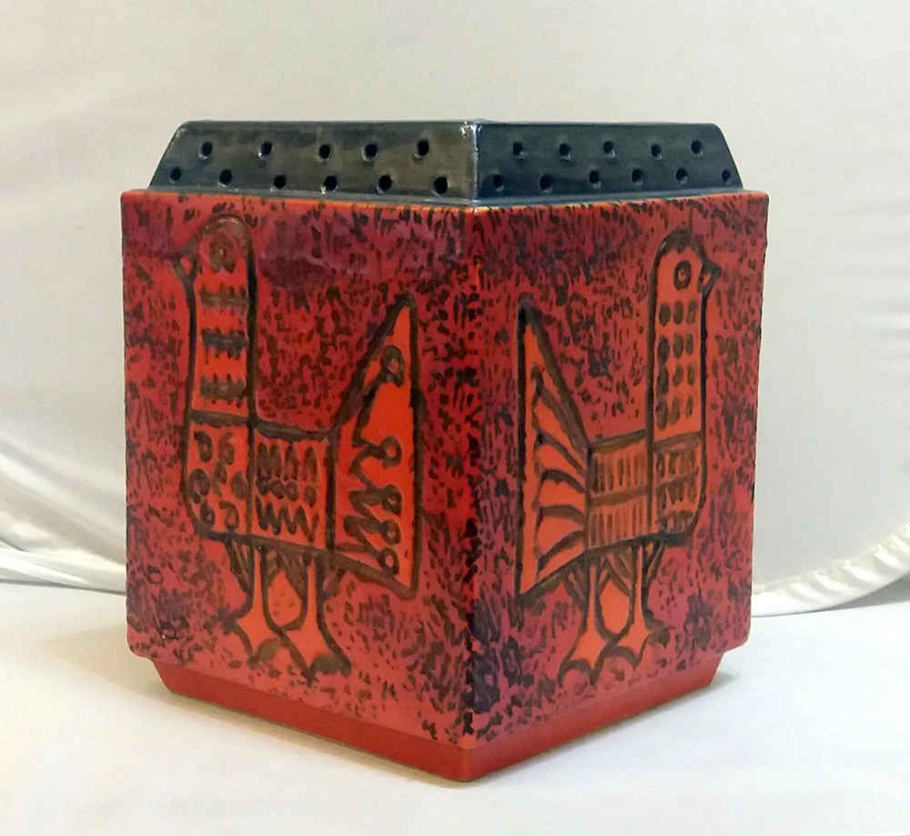 Hungarian Mid-Century Modern Pot with Pigeon decoration. Nádor Judit style, very good modern design. Hand made, hand painted item. Orange color, cube shape, a real modern form, can be a very good item in a modern enterieur. Age: 1960'. Size: 19,5x15,5x15,5cm/7,7x6,1x6,1inch. Perfect condition, no harm, no damage. The eBay listing photos are part of the description. We have many beautiful, collectable modern item, you can see these in our E-bay store. We wrap very safe with double box, bubble wrap and we can ship Worldwide. The eBay listing photos are part of the description.