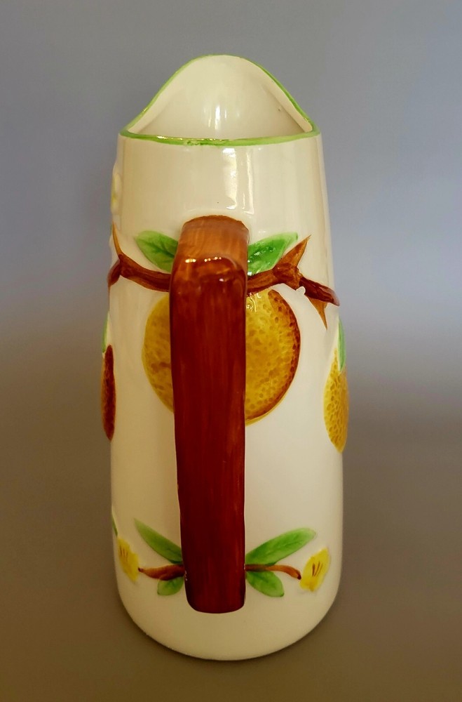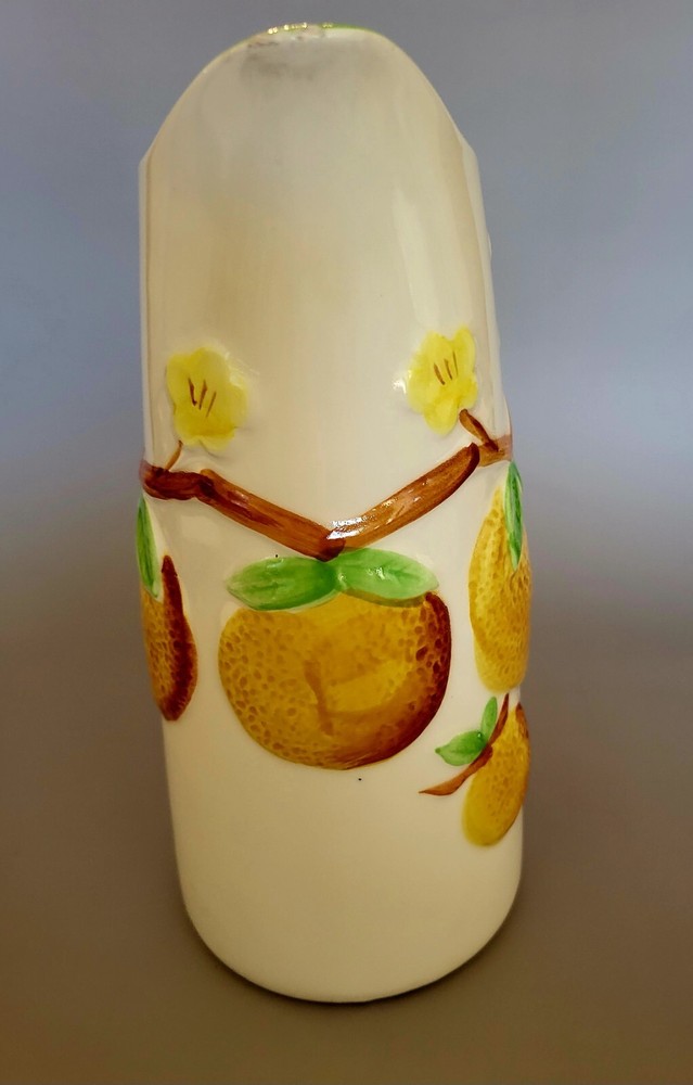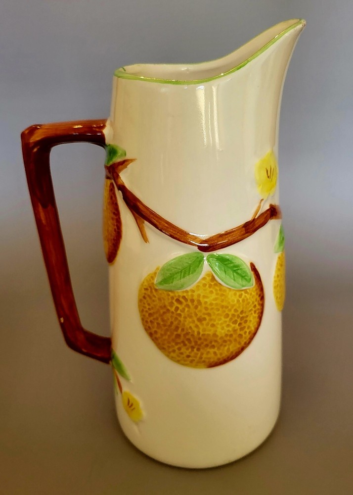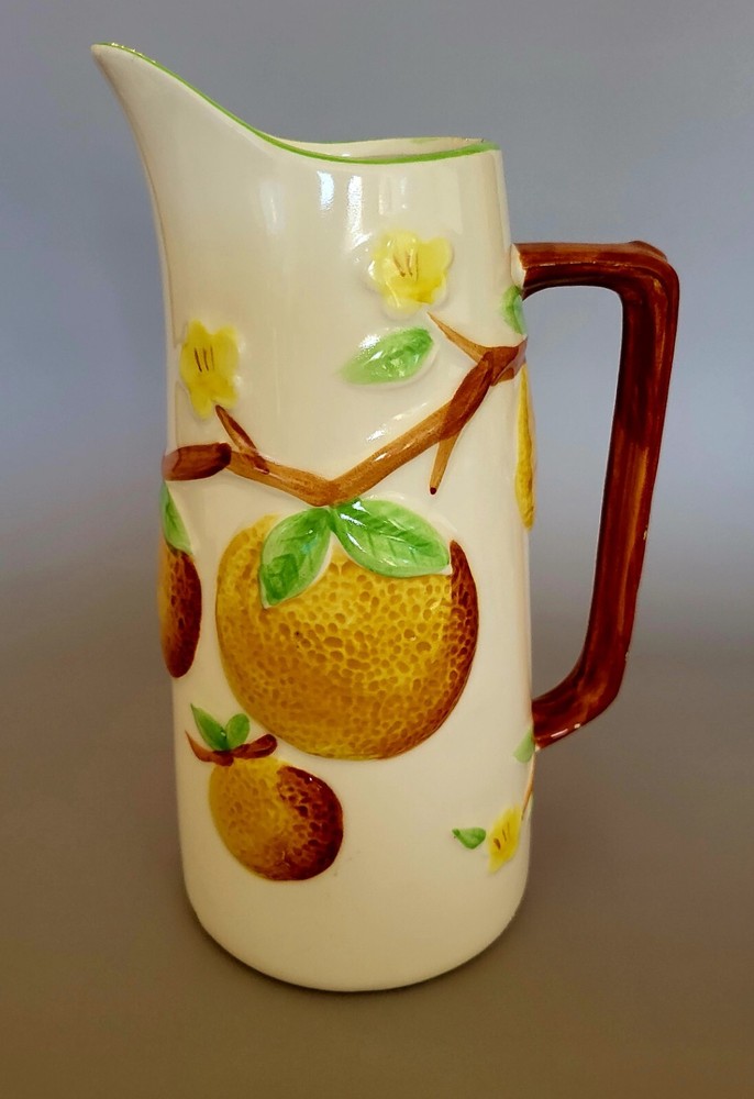 This eye-catching pitcher inspired by mid-century modern design boasts an embossed orange pattern on a white ceramic surface. The pitcher stands tall at 9 inches with a capacity to hold refreshing beverages. The brand behind this masterpiece is Napcoware, and the material used in constructing this item is ceramic. The pitcher is perfect for use in different settings like the home, garden, kitchen, dining and bar areas. This item comes in a personalized design and doesn't disappoint when it comes to quality and style.