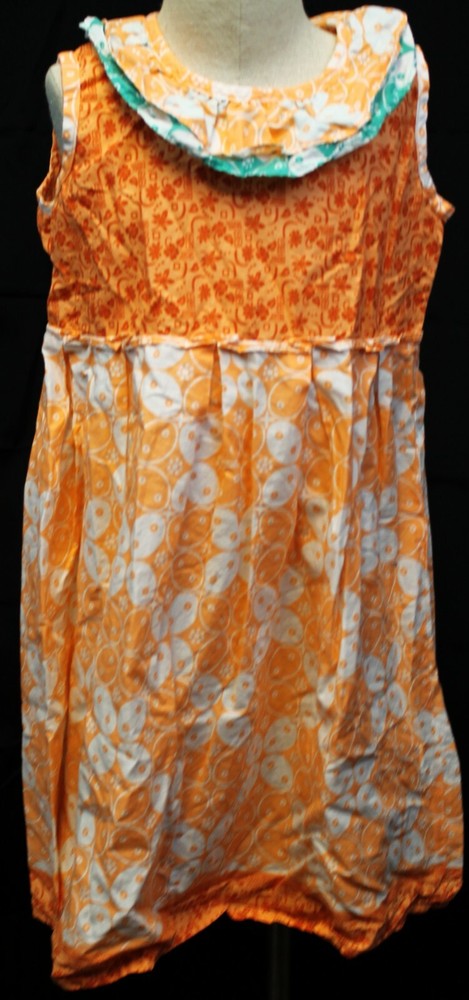 Girls Dress Orange sundress Floral pattern in white and dark orange Sleeveless Orange and green collar Large pleats at top of skirt 1 Button closure at neck No tags Estimated size 6 Approx measurements: Armpit to pit: 13"(33 cm) Shoulder width: 10" (25.5 cm) Waist: 26" (66 cm) Total length: 26" (66 cm) Please ask any questions if unsure about anything. They are easier than returns Thank You For Viewing Our Listing I am a college student studying engineering in addition to having a family. My hours can be crazy and sometimes hectic. Due to changing classes each semester, the hours for work also change. Please be assured that I will ship out your package within 2 business days, and I will answer questions/messages as promptly as possible. I appreciate all the wonderful customers I have had over the years and look forward to more in the future! International Buyers : I will ship with ebay's Global Shipping Program or without. Whichever you prefer I am ok with. If the shipping is not showing up with your preferred method, then please send me a quick message and I will make the adjustments for this listing only so that you can use your preference. I will reply to your message as soon as I complete it to let you know that the listing have been modified.
