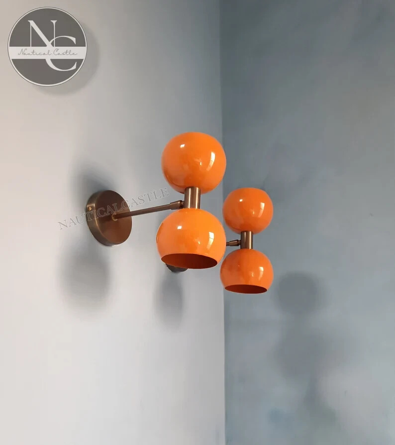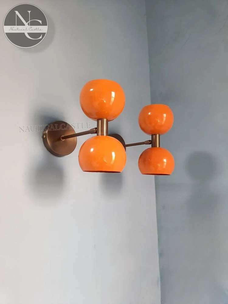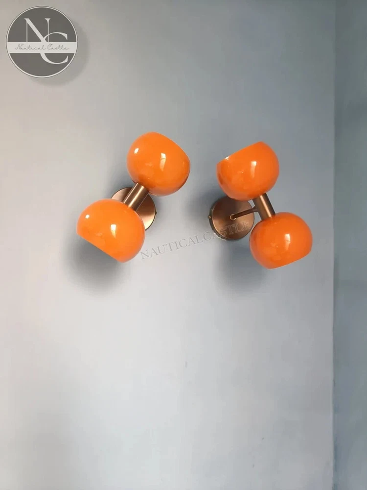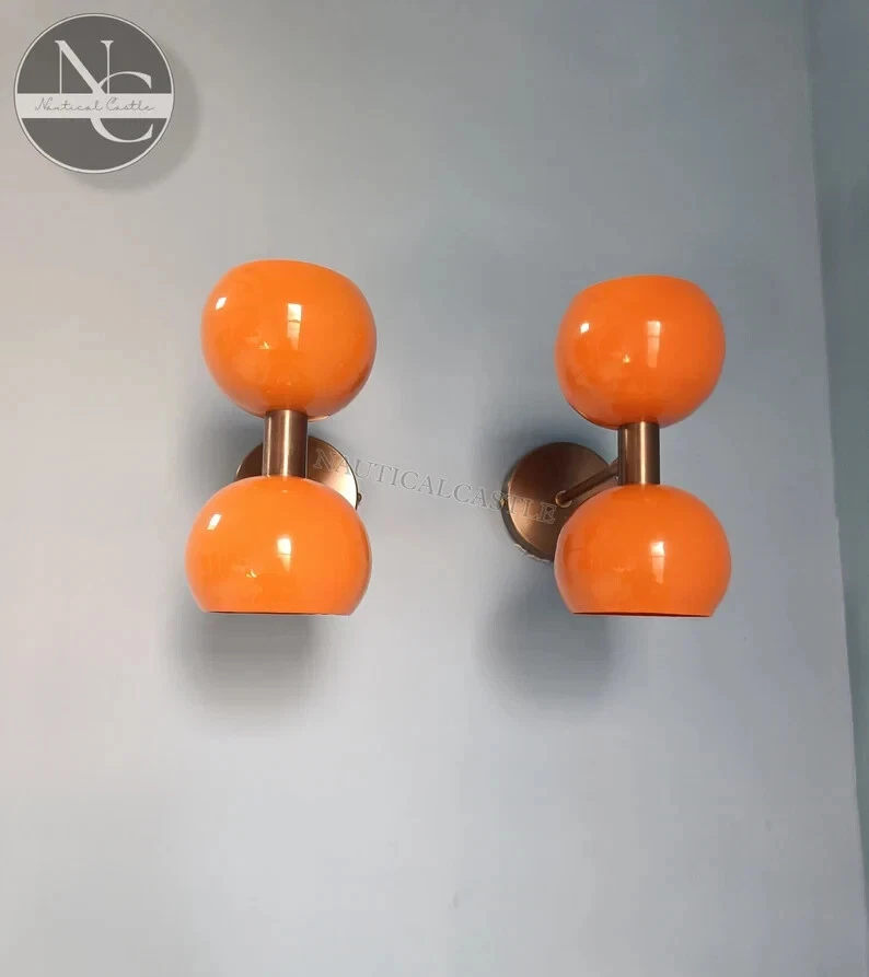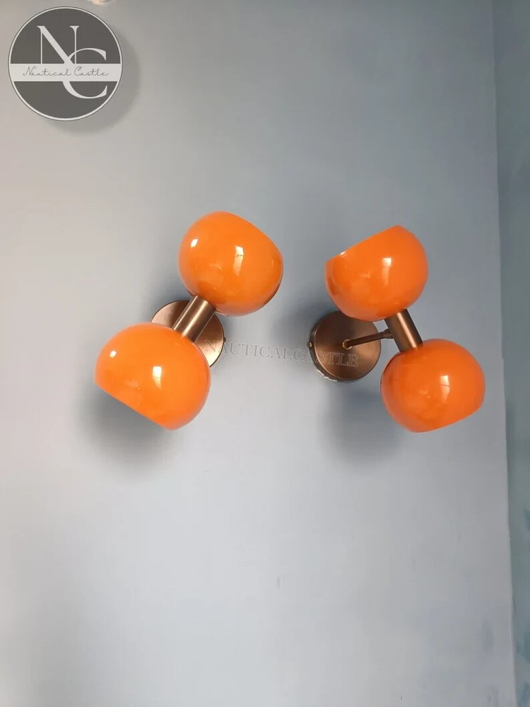 PRODUCT DETAILS:- Wall Sconce Diabolo Pair of Two Modern Italian Wall Lights Black & White Wall Fixture Light . This is Style light fixture is made with UL approved parts. We recommend 15W to 40W max. Light bulbs are not included. Wall canopy can be adjustable at different angles so you can mount this sconce. We hand craft all of our light fixtures. This chandelier has been made with brass material. Minor variations in finish are an inherent characteristic of such material and add to the beauty and uniqueness of the product. PRODUCT SPECIFICATIONS: • Premium quality mid-century Wall Fixture. • Made of pure brass brass shiny finish . other brass finishes are available at request. • Measurements is :D x 7 inch W x 4.5'' inch H x 9'' inch Wall canopy To Light Socket Edge • Set of Two Diabolo Wall Fixture • Orange, Brass, Glass Finish • Wall Fixture used standard sconce E-12 or E-14 light bulbs. (not included) • This Is Reproduction Production Not Sold Antique. MATERIALS: • Brass And Iron • All Components are UL approved. BULB TYPE: • Requires Four (4) 15 watt bulb type A (not included). • E-12 or E-14 socket Rated with 125 voltage, 75 watt max. • 7 watt to 15 watt bulbs are recommended. • These Wall Sconce Use Incandescent Bulbs, Energy Saying, LED Bulbs. If You Have Any Questions Regarding Our Products Feel Free To Message Us. Thank You And Happy Shopping.