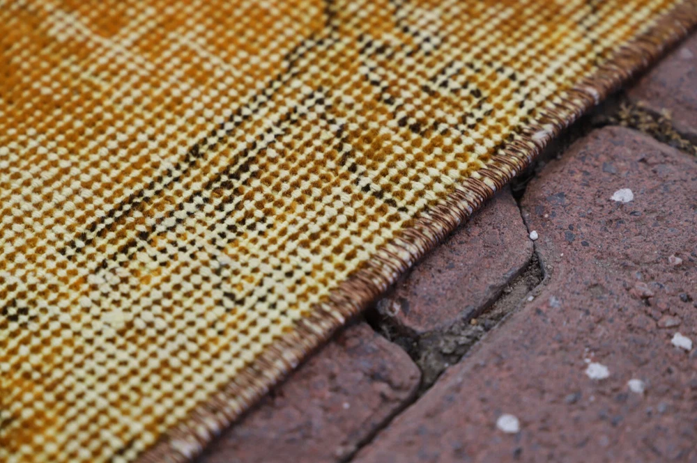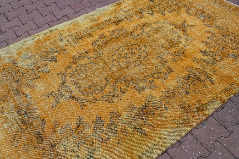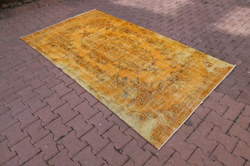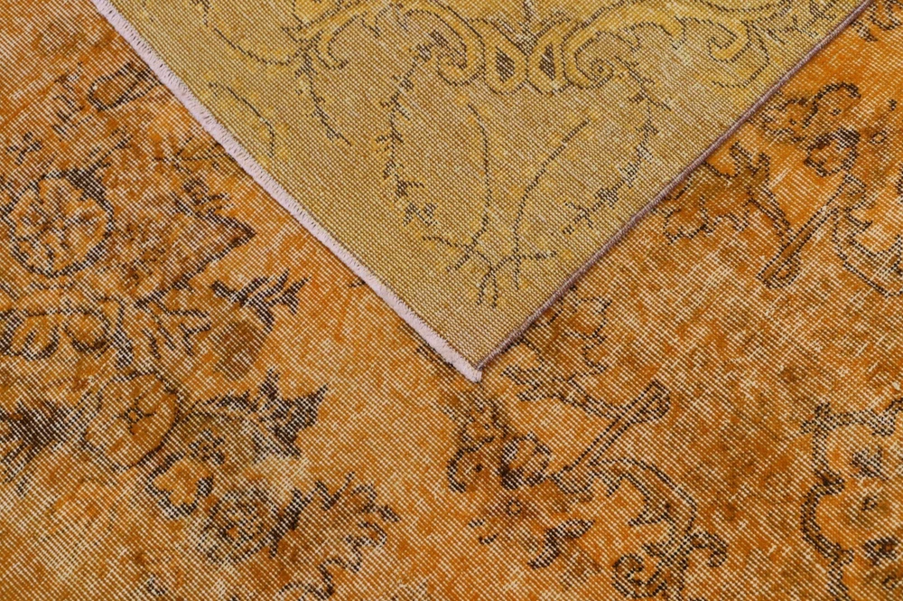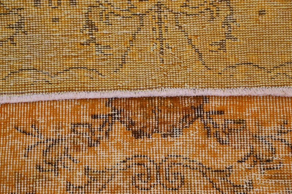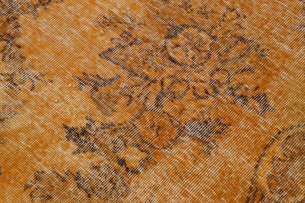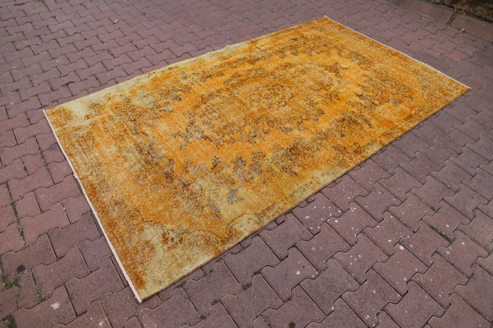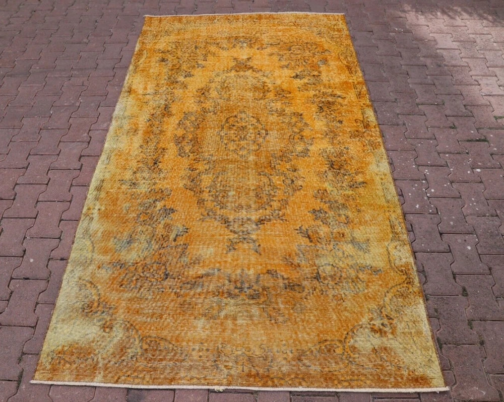 Orange Hand Knotted Vintage Carpet Anatolian Traditional Overdyed Area Rug Size: 4.8 x 8.5 ft (145 X 260 cm) 57 x 102 inches Color: Orange Material: 100% Hand Spun Organic Wool Condition:Professionally washed and cleaned.Ready to use. We offer only perfect rugs with no wear, stains, or odor. Perfect for an entry, kitchen, stair landing, library, bedroom, studio, loft lounge, office and living room. Fast Shipping: Delivery in 1-3 Business Days in your address. Return:The buyer is responsible for the returning shipping cost. All my rugs are vintage, handmade, village made Turkish rugs. Each one is a unique work of art and one of a kind. They are handwoven by the traditional tribes of Anatolia, Turkey. Each and every rug has an attached story with it. Don't forget to look at the other beautiful rugs of my store. Please don't hesitate to contact me if you have any questions! Thank you very much. Best Regards.