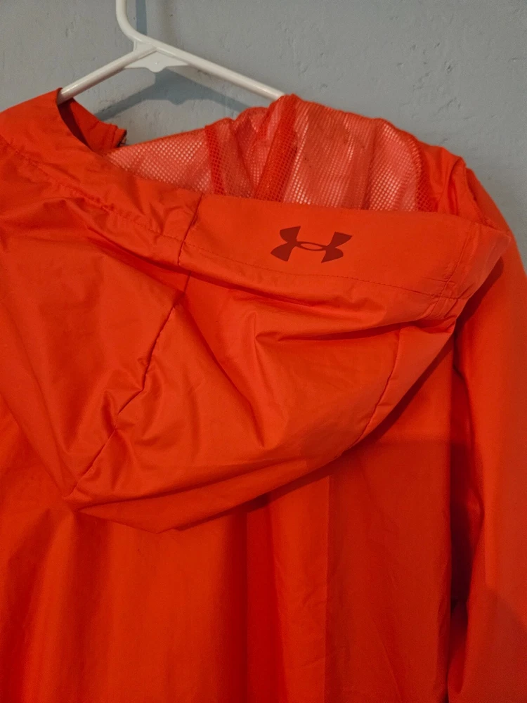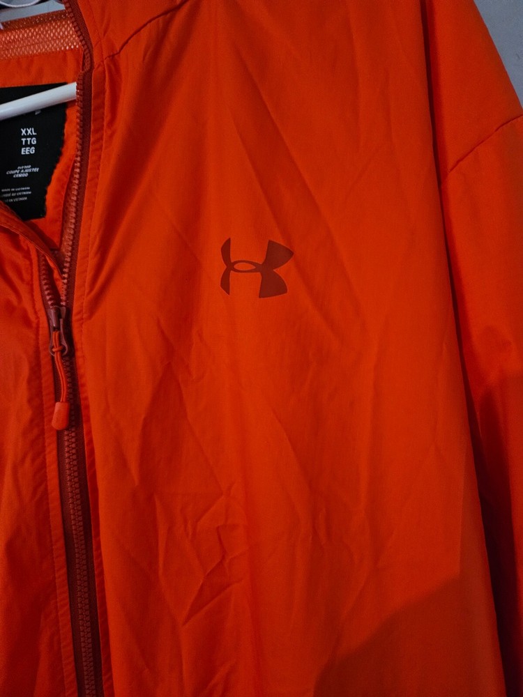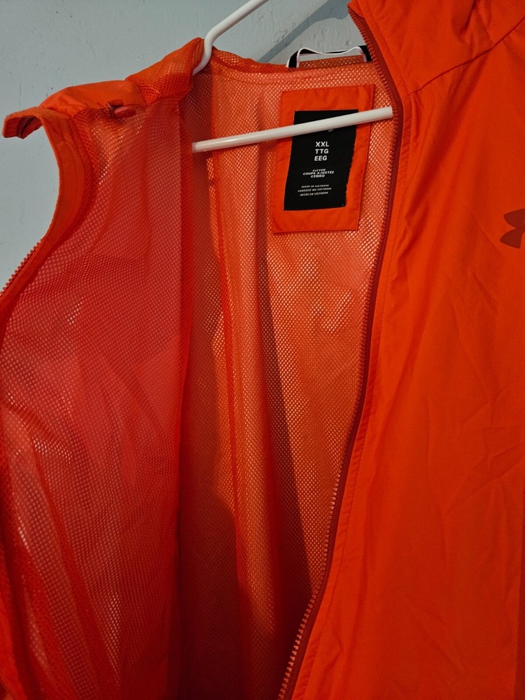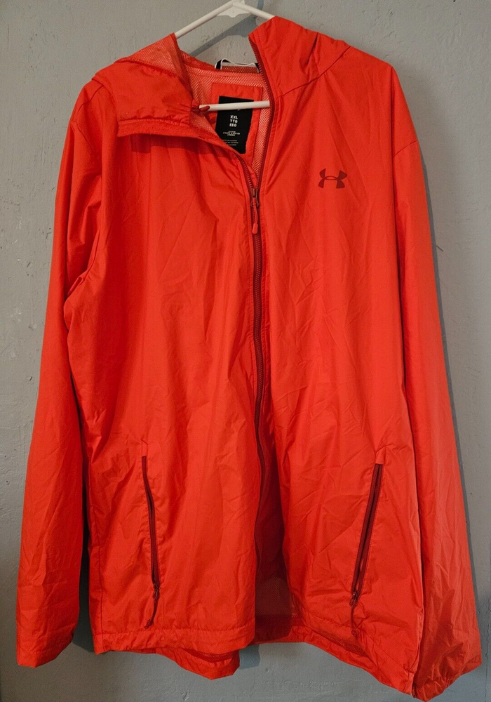 This is an Orange Hurley Hooded Jacket made of a Polyester Blend fabric. It is a mid-length, athletic fit jacket suitable for winter and active wear activities like cross training, CrossFit, and hiking. The jacket features a hood and comes in size XXL for unisex adults. It is a basic style jacket with a solid pattern, perfect for outdoor adventures and staying warm during colder weather.