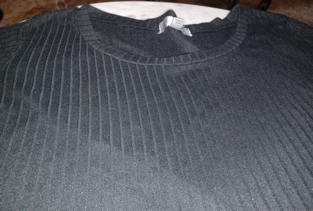 Orange Kiss Women's Mid-Drift Top Large Black Short Sleeve 92% Polyester 8% Spandex Approximate Measurement: Pit to Pit 16.5" Length 16.5" Scoop Neck