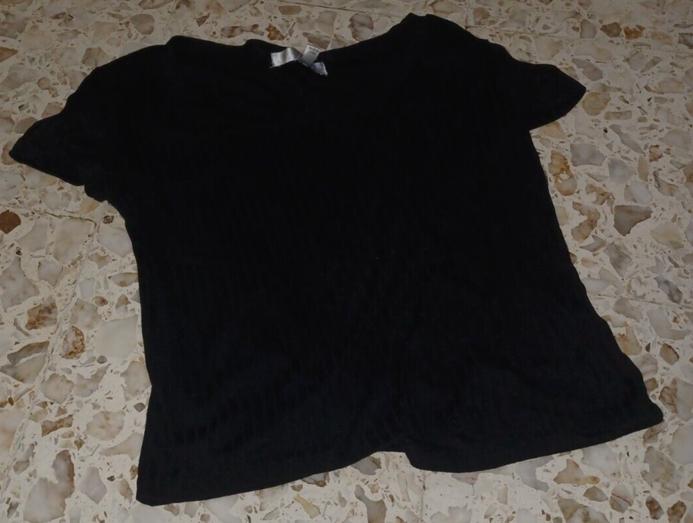 Orange Kiss Women's Mid-Drift Top Large Black Short Sleeve 92% Polyester 8% Spandex Approximate Measurement: Pit to Pit 16.5" Length 16.5" Scoop Neck...
