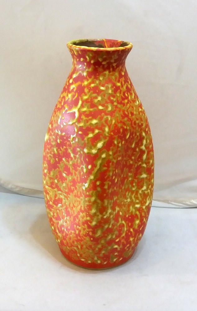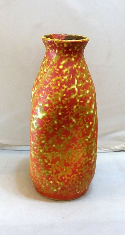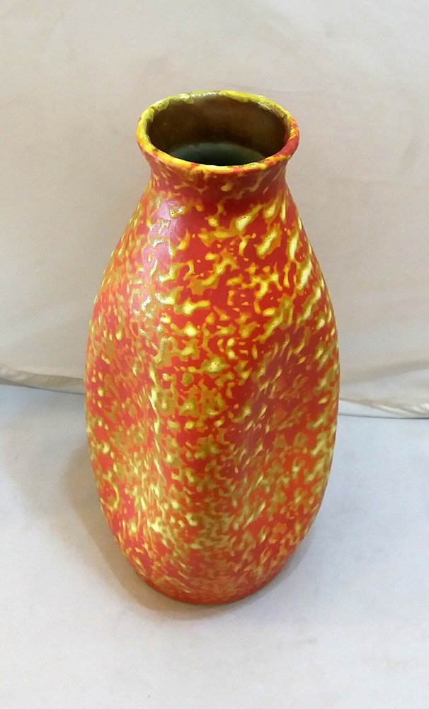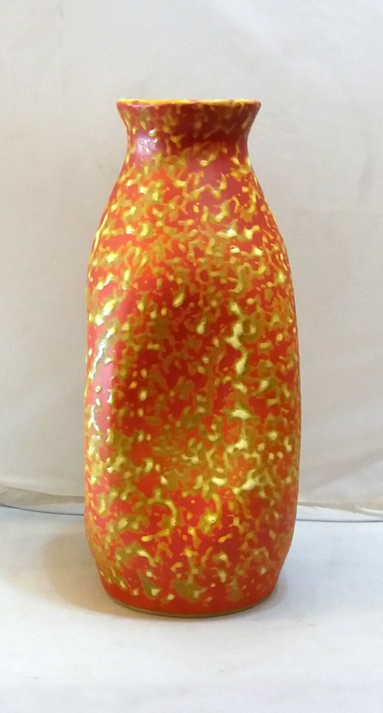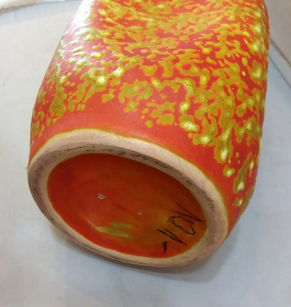 Orange, Hungarian "Tófej" vintage ceramic vase. Hand shaped and hand painted, orange vase. It has very interesting glaze with exciting and nice, clear shape. It has good design, modern shape, so a perfect choice in a modern enterieur. Tófej ceramic, Tófej was a Hungarian village with a small manufactory, here was made this vase, handmade item from 1960'. Vintage Hungarian ceramic. High: 29,5cm/11,6inch. Perfect condition. We have a modern, mid-century ceramic collection in our E-bay store. We wrap very safe with double box, bubble wrap and we can ship Worldwide. The eBay listing photos are part of the description.