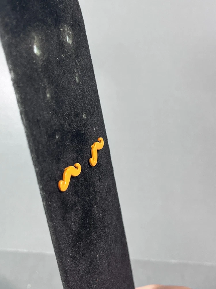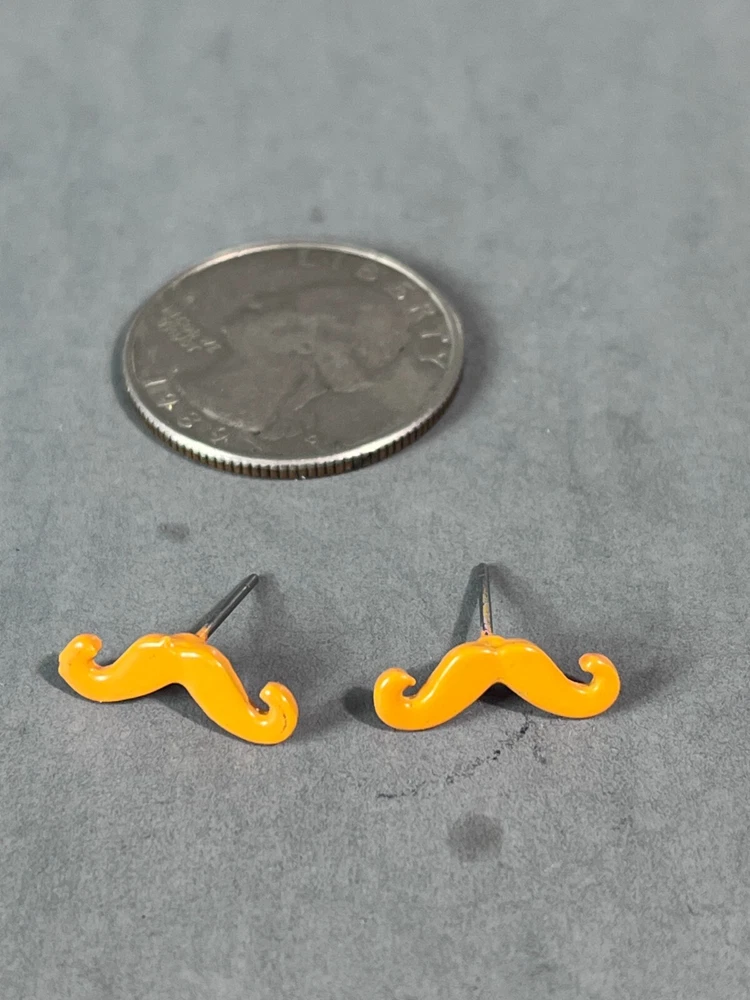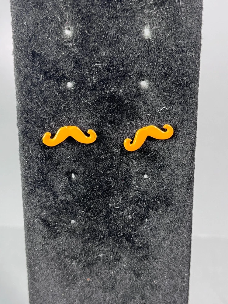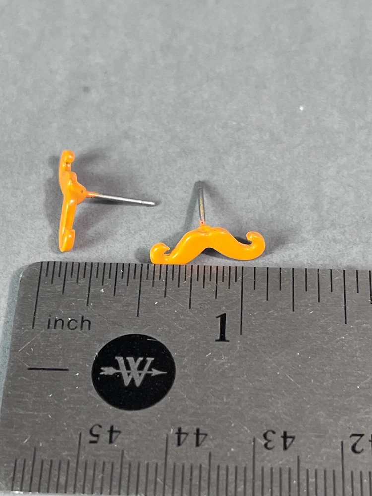 Up for sale is a set of moustache earrings. They are orange in color. They are in good pre owned condition! Please view all posted pictures as they are part of the description. If you have any questions please ask. Please check out my store for more great deals that are listed every day!!