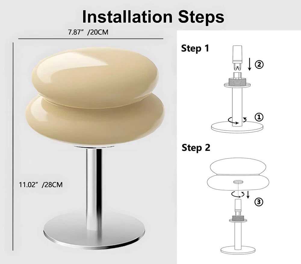 Orange Mushroom Bedside Small Lamp,Mid Century Modern Lamp for Nightstand, Dimmable Retro Egg Tart Lamps, Bedroom Decor Ambient Lighting Aesthetic Cute Lamps for Living Room (Orange) Product Details Color: Orange Brand: Glivpny MPN: HB003 UPC: Does not apply EAN: Does not apply Finish Type: Polished Base Material: Metal Bulb Base: G9 Product Dimensions: 7.87"D x 7.87"W x 11.02"H Item Weight: 0.9 Pounds Finish Type: Polished Base Material: Metal Bulb Base: G9 Product Dimensions: 7.87"D x 7.87"W x 11.02"H Item Weight: 0.9 Pounds Lamp Type: Table Lamp Shade Color: Orange Shade Material: Glass Switch Type: In Line Style: Mid Century Modern Brand: Glivpny Color: Orange Special Feature: Dimmable Light Source Type: LED Material: Glass Room Type: Dorm, Home Decor, Living Room, Bedroom, Playroom Recommended Uses For Product: Decoration Power Source: Corded Electric Shape: Egg Tart Controller Type: Push Button Number of Light Sources: 1 Connectivity Technology: USB Included Components: Bulb Is Waterproof: False Mounting Type: Tabletop Wattage: 9 watts Number of Items: 1 Lighting Method: Downlight Control Method: Touch Indoor/Outdoor Usage: Indoor Specific Uses For Product: Decoration Water Resistance Level: Not Water Resistant Installation Type: Tabletop Number of Pieces: 1 Voltage: 5 Volts (DC) Brightness: 180 Lumen Is Cordless?: No Size: Small Manufacturer: Zhongshan Jiuji Lighting Technology Co., Ltd. Part Number: HB003 Item Weight: 14.4 ounces Country of Origin: China Item model number: HB003 Finish: Polished Pattern: Solid Special Features: Dimmable Batteries Included?: No Batteries Required?: No Warranty Description: 6 months. Date First Available: March 4, 2024 Glass Mid Century Modern Lamp--- Its minimalist design with a cute egg tart glass lampshade and a solid chrome base to enhance your decor. Glivpny midcentury lamp is the perfect vibe for a chill midcentury modern lamp bedroom lamp, this glass lamp will give you a warm and comfortable atmosphere. Aesthetic Hand-Blown Bedside Lamp--- Glivpny modern table lamp combines Silver metal lamp pole with unique hand-blown lampshade,makes it a practical choice to place on a desk,which enhance the taste of the space, cool lighting. Stepless Dimmable Mushroom Lamp--- The Glivpny table lamp included G9 LED bulb offers stepless dimmable,adjust the rotate control button to choose the brightness according to your mood,you can set the brightness to be used an ambient light and night light or bedside reading,meet your various requirements. Perfect Decor &Gift--- Egg Tart Lamp for nightstand , stepless dimmable Table Lamps with glass lamp body. The retro lamp is great as a gift for holidays, birthdays, Valentine's Day, Christmas, and Thanksgiving. Friendly Service--- If you have any questions, please do not hesitate to contact us as soon as possible,Quick replies and friendly customer service will be provided!