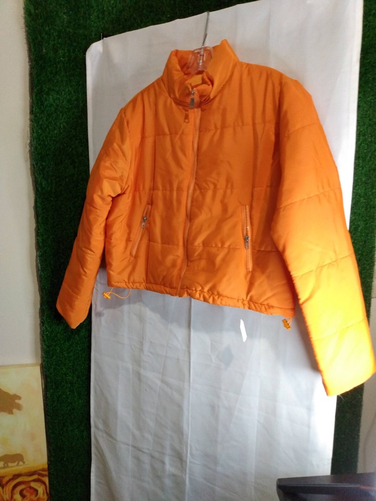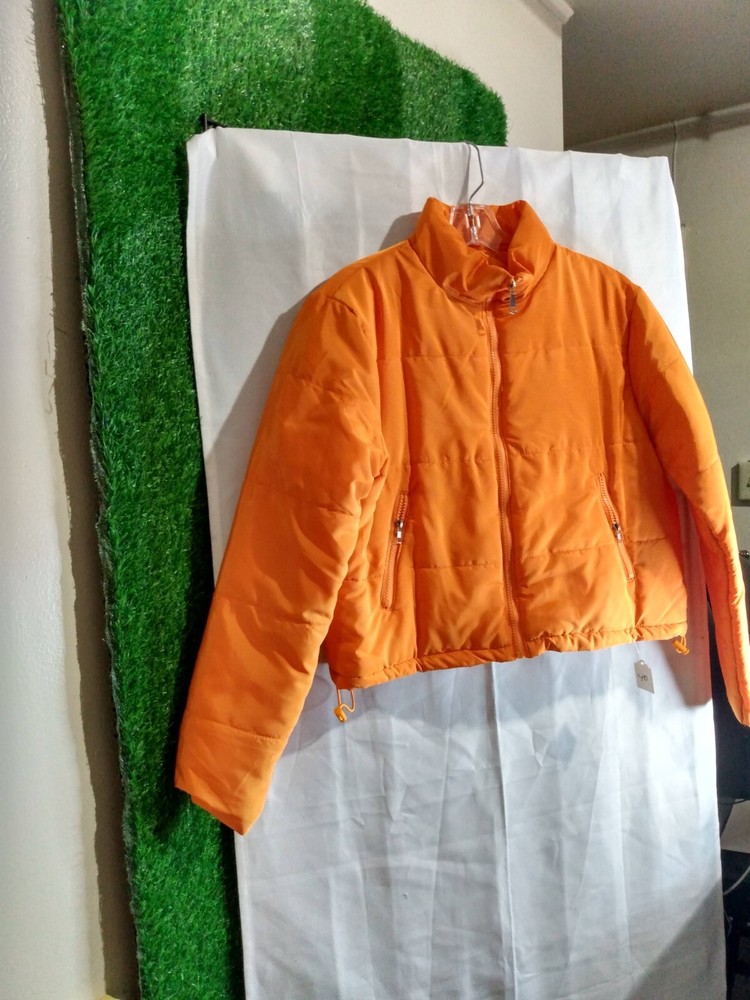 Add a pop of color to your winter wardrobe with this vibrant orange puffer jacket. The mid-length coat is made from softshell polyester fabric with a full zipper closure and accents of a zipper for style. The jacket is perfect for travel, parties, workwear, and casual occasions. The coat is designed for women in size L with a regular fit. The lining material is 100% cotton, and the insulation material is polyester. The coat is suitable for the fall and winter seasons and is ideal for keeping you warm and stylish during that time.