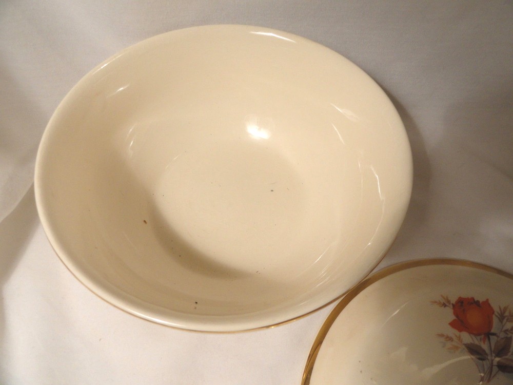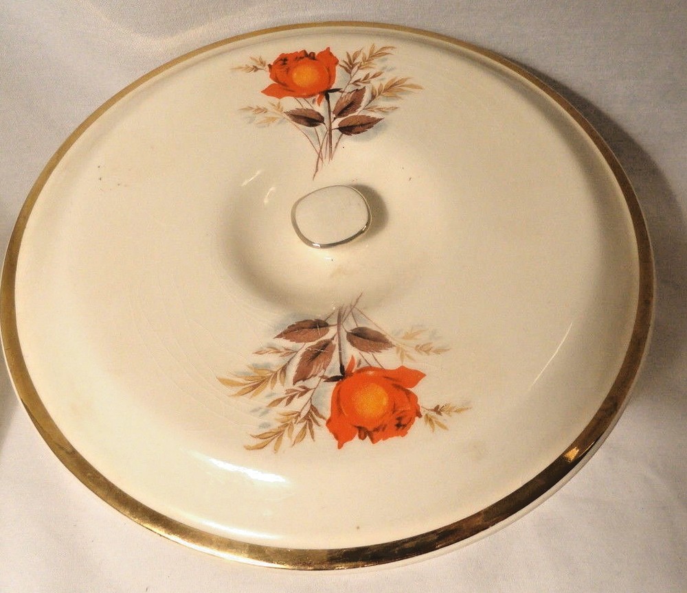 8" Casserole Bowl and lid by Paden City Manufacturer Status: Discontinued. Pattern: PCP5 by Paden City Description: Orange Rose Center This Mid-Century Modern casserole has one underglaze chip on the underside of the lid, on the outside rim. And one tiny chip on the base on the outside part of the rim. Both are minimal and don't really affect the appearance. This is marked on the base but it's very faint and not very legible. We have more Pottery listed so bid to win and then stop in and shop for more! Welcome to Depression Glass Warehouse !! We're glad you stopped by! Shopping with us, you can expect premium customer service and wonderful products. Please Sign up for our Store Newsletter AUCTION/SALE TERMS: 1. Payment within 2 days of the end of the item listing, in USD. 2. If you have questions about an item? ASK ME FIRST! Use this link ASK SELLER A QUESTION ; 3. Anything that is slow to arrive, contact me first. Trust me, I hate losing things in the mail as much or more than you do and will hunt them down if at all possible. 4. Hassle Free Returns - just send it back for a full refund when I recieve it, by the same method as your original payment. 5. International bidders, we do not collect customs duty or vat. THAT is your responsibility to pay upon receipt. We also do not mark things as Gifts. My PO knows I sell on ebay and it's not a gift so that doesn't work here ....besides it's illegal. Once you've bid here, please come see what else we have at Depression Glass Warehouse