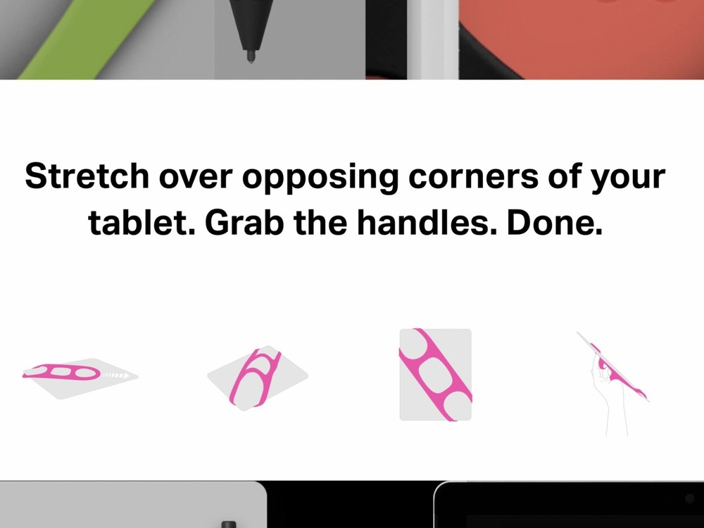 Orange Mid-Size Padlette Tablet Handle Holder. Tablets are meant to be held! Stretch over opposing corners of your tablet. Grab the handles. Done. Ease of use. Peace of mind. Totally secure. Amazingly functional. This mid-size Paulette accommodates pads from 8 inches to 11 inches. The Padlette is designed to be a secure yet comfortable support for your tablet computer. Simply stretch it over opposing corners – the resulting tight fit ensures your tablet is secure. Takes only a few seconds to install yet is a totally secure grip! Packaging is a little bit worse for wear from storage but Padlette tablet handle is 👌!