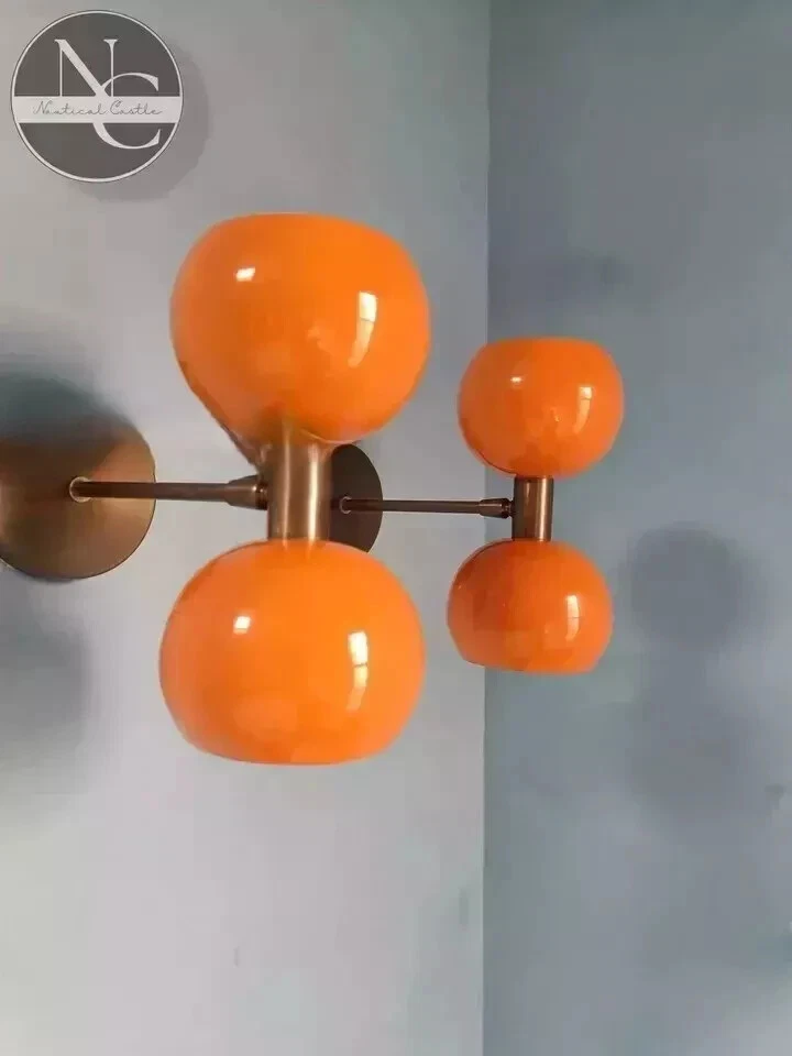 Add a touch of mid-century modern charm to your indoor space with this beautiful orange wall sconce light. With an adjustable feature, this corded sconce is perfect for any room, whether it be a bedroom, living room, or dining room. The brass and metal material combination gives it an Italian Stilnovo vibe, making it a unique addition to your home decor. This wall sconce light is a perfect fit for anyone who loves vintage style. The sensor type is light and the power source is corded, making it easy to use. The sconce is made in India and has a finish as shown. It is a great addition to any home and will surely complement any interior style. Wall Sconce Diabolo Pair of Modern Italian Wall Lights Orange Wall Fixture Lamps. PRODUCT DETAILS:- Wall Sconce Diabolo Pair of Two Modern Italian Wall Lights Black & White Wall Fixture Light . This is Stilnovo Style light fixture is made with UL approved parts. We recommend 15W to 40W max. Light bulbs are not included. Wall canopy can be adjustable at different angles so you can mount this sconce. We hand craft all of our light fixtures. This chandelier has been made with brass material. Minor variations in finish are an inherent characteristic of such material and add to the beauty and uniqueness of the product. PRODUCT SPECIFICATIONS: Premium quality mid-century Wall Fixture. Made of pure brass brass shiny finish . other brass finishes are available at request. Measurements is W x 4.5'' inch H x 9'' inch Wall canopy To Light Socket Edge Set of Two Diabolo Wall Fixture Orange, Brass, Glass Finish Wall Fixture used standard sconce E-12 or E-14 light bulbs. (not included) This Is Reproduction Production Not Sold Antique. MATERIALS: Brass And Iron All Components are UL approved. BULB TYPE: Requires Four (4) 15 watt bulb type A (not included). E-12 or E-14 socket Rated with 125 voltage, 75 watt max. 7 watt to 15 watt bulbs are recommended. These Wall Sconce Use Incandescent Bulbs, Energy Saying, LED Bulbs. PAYMENT I accept Payoneer. COUNTRY : Shipping Worldwide from India TYPE: Standard Int'l Flat Rate Shipping I usually ship within 24 hours after receipt of payment. The delivery time from Ukraine: 10-25 days. Item will be qualitatively packed. Always leave a positive feedback to good ebayers. 30 DAY RETURN POLICY I guarantee you complete satisfaction with all my high quality products. If you receive an item you did not order or if an item you ordered is received damaged or defective, I will refund you the price you paid for it or replace it with identical one.