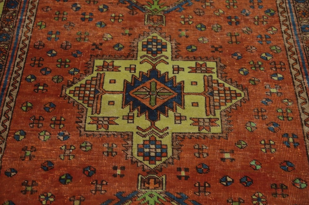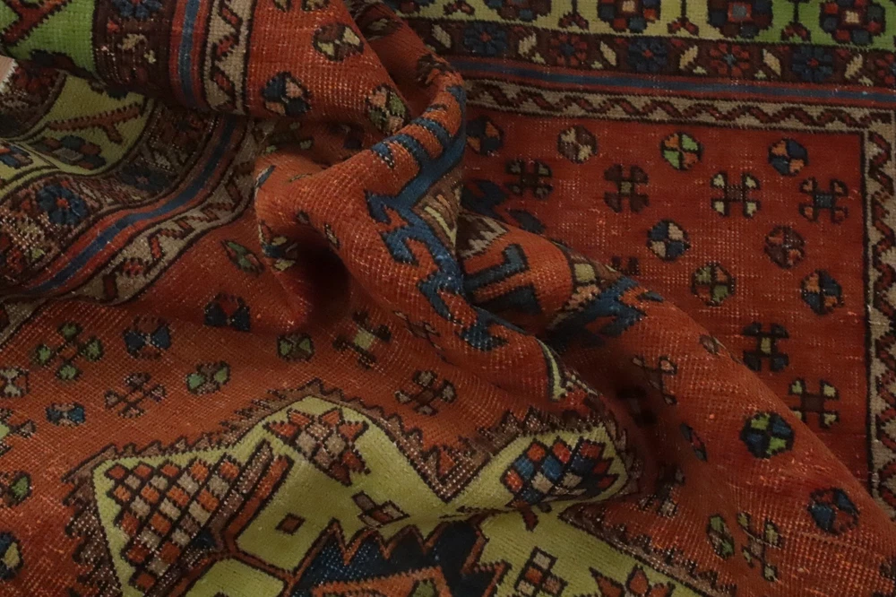 This rug is absolutely stunning! The rich orange tones and intricate geometric patterns add so much warmth and character to my space. The hand-knotted wool feels incredibly soft underfoot, and the vintage look gives it authentic charm. Perfect size for an accent piece—I get compliments every time someone visits! The quality is outstanding for the price, definitely worth it.